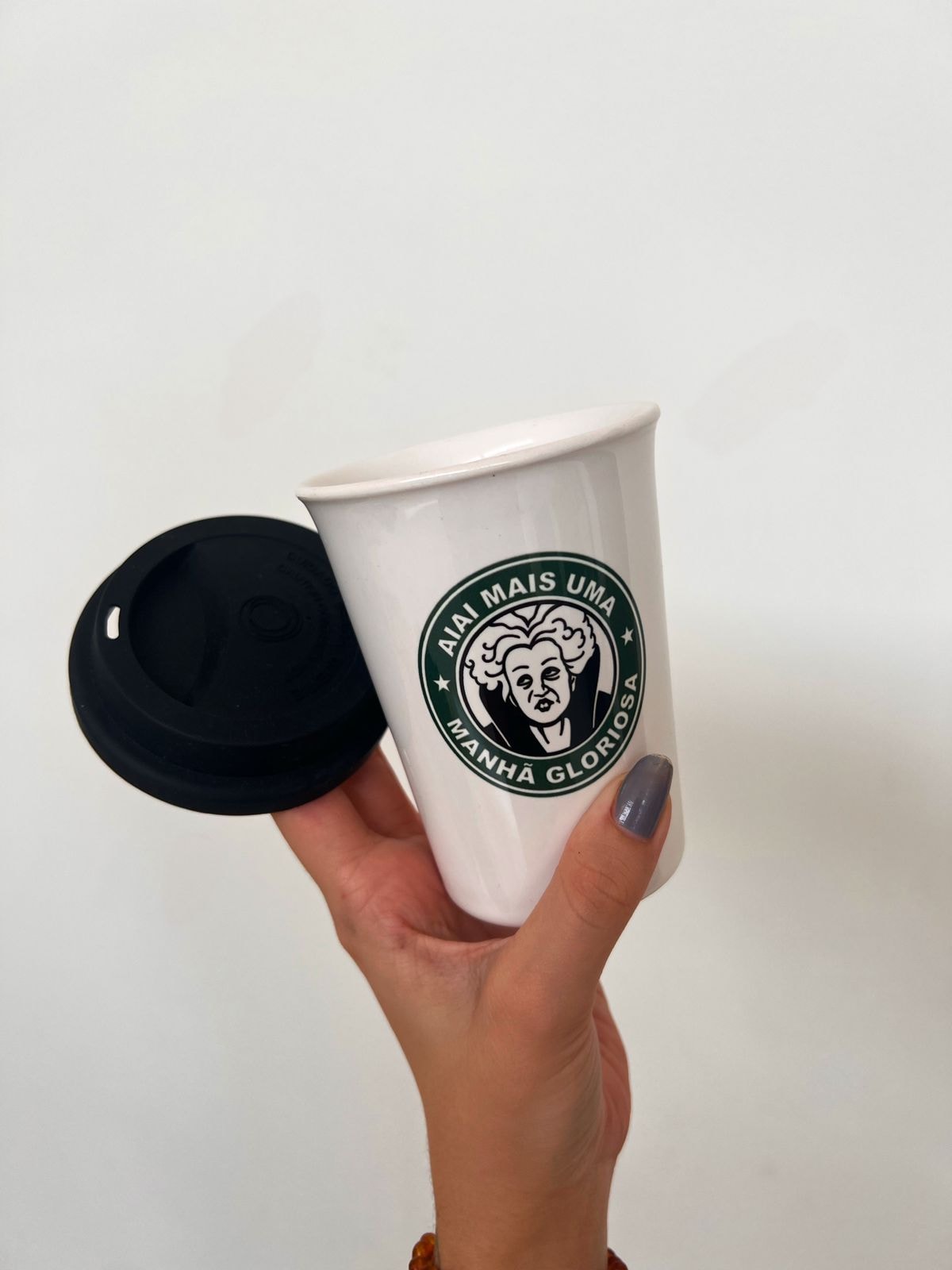 Material: Cerâmica e tampa de silicone.