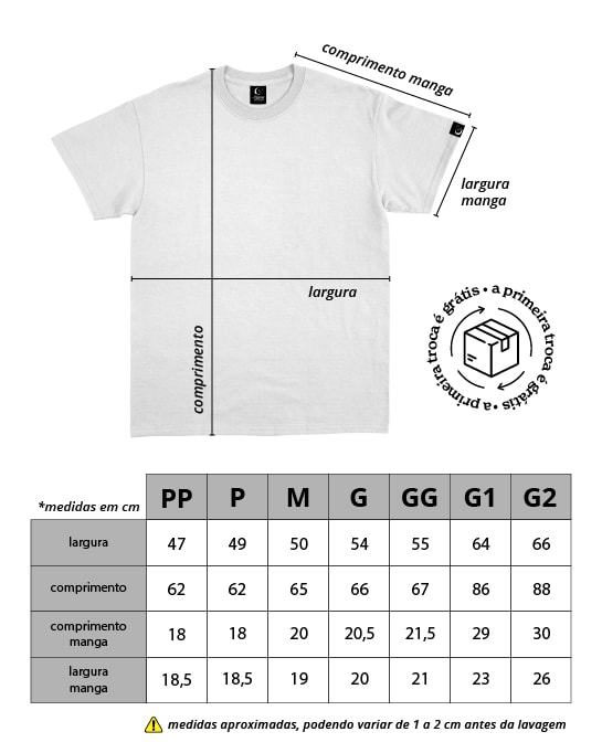 Nossas camisetas possuem padrão de tamanho Unissex.