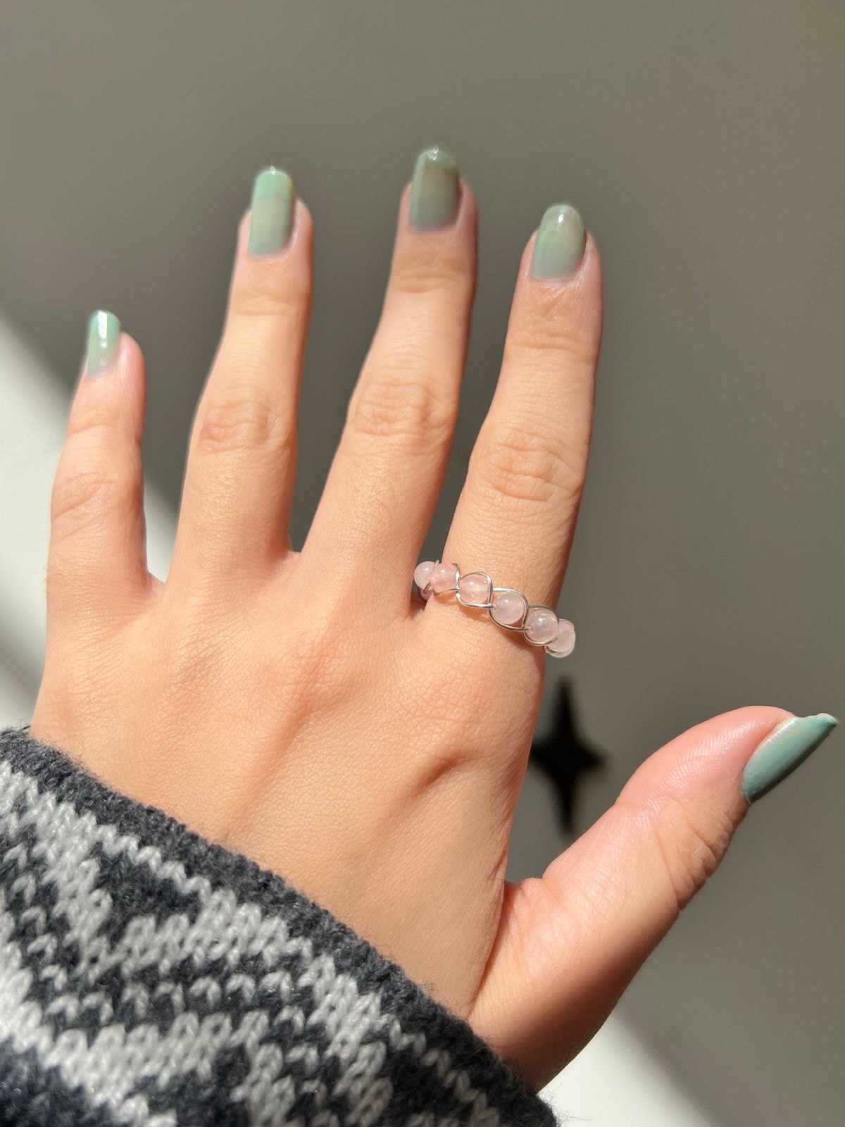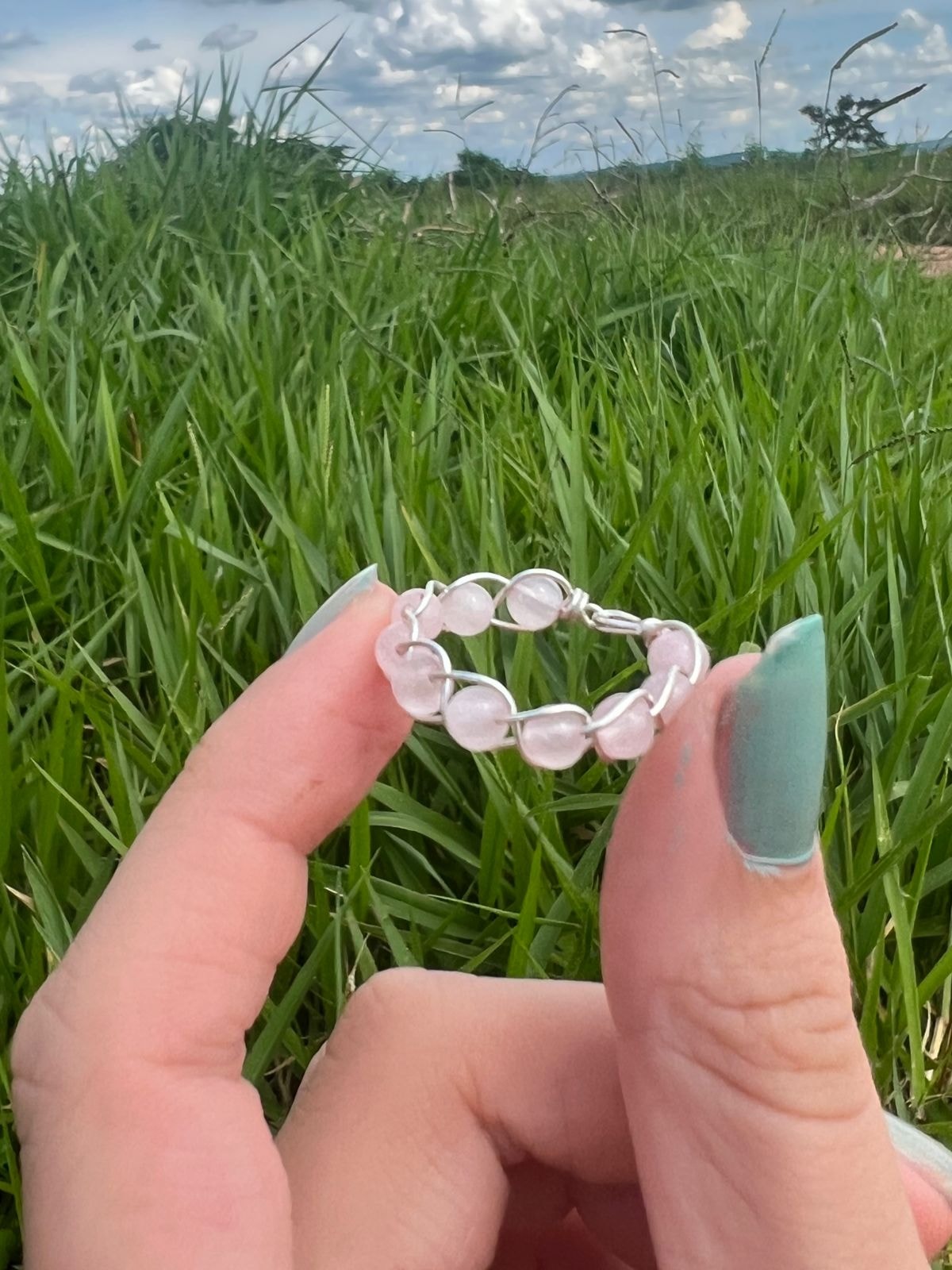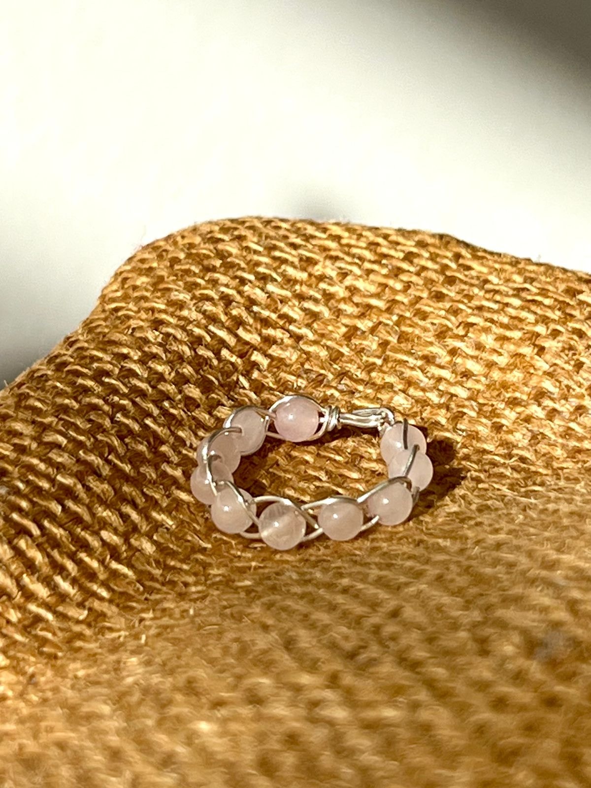 Anel artesanal com Quartzo Rosa.