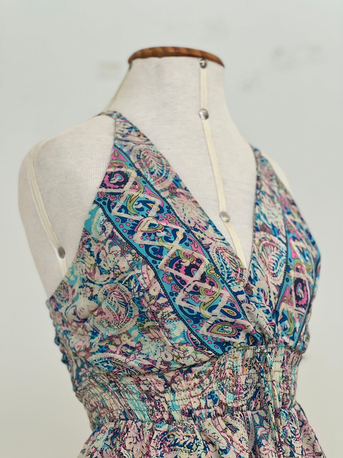 A Bata Hamsa remete ao significado de proteção do amuleto Hamsa. Também conhecido como Mão de Fátima, simboliza a Boa Sorte. As cores alegres e leves dessa bata se associam à energia de cura e alegria.