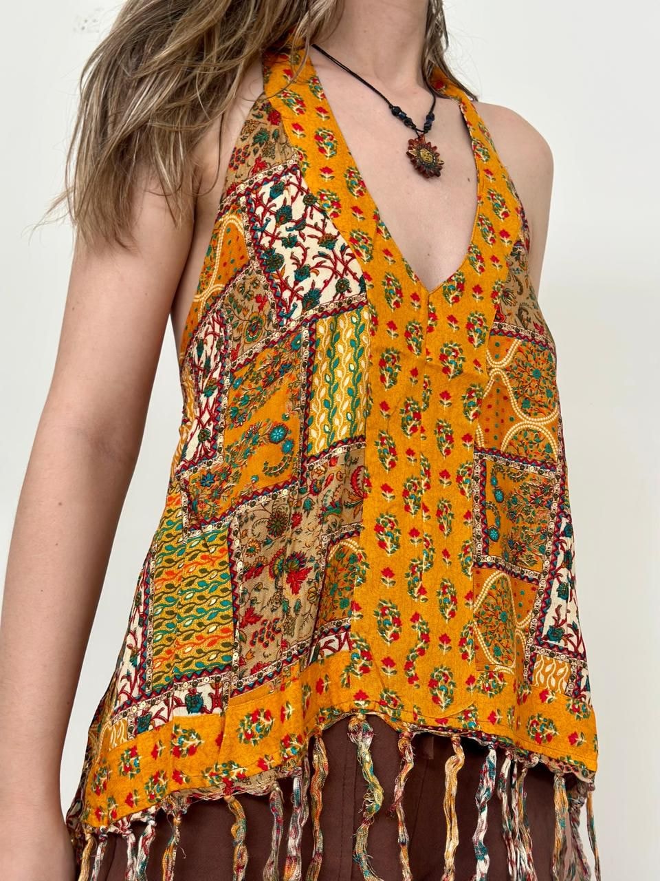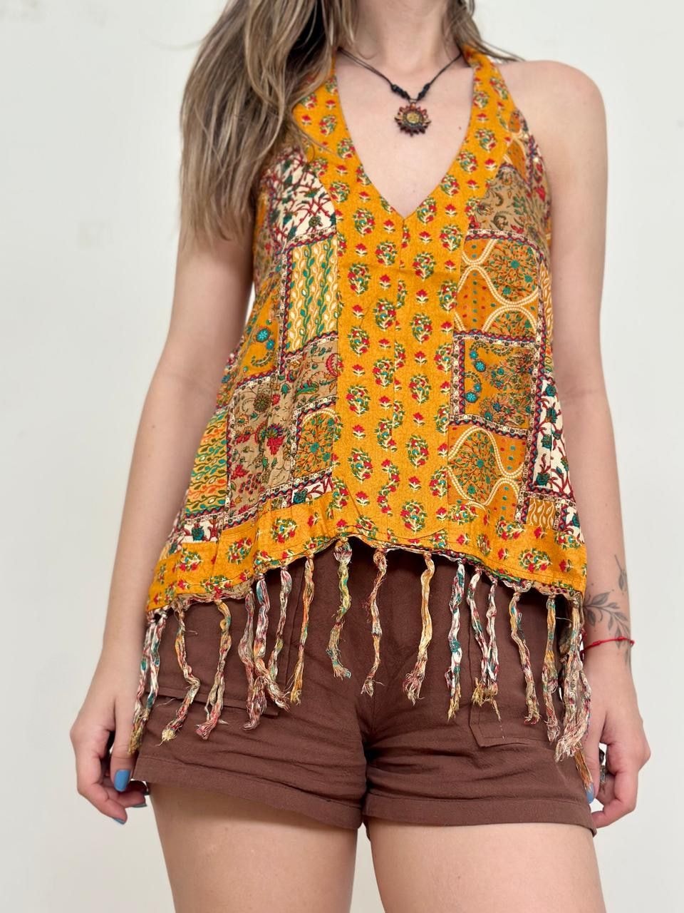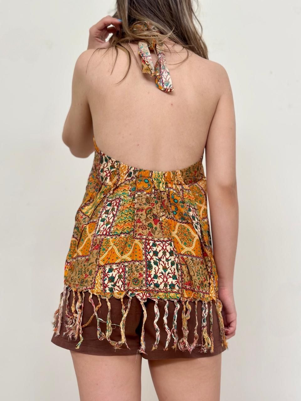 A moda indiana é encantadora e mística. Seus tecidos possuem riqueza de detalhes, cores vibrantes e texturas leves. Essa bata indiana é repleta de simbolismo e significados profundos, o que faz dela uma peça muito especial. É perfeita para o verão e leva alegria e autenticidade a todo look <3