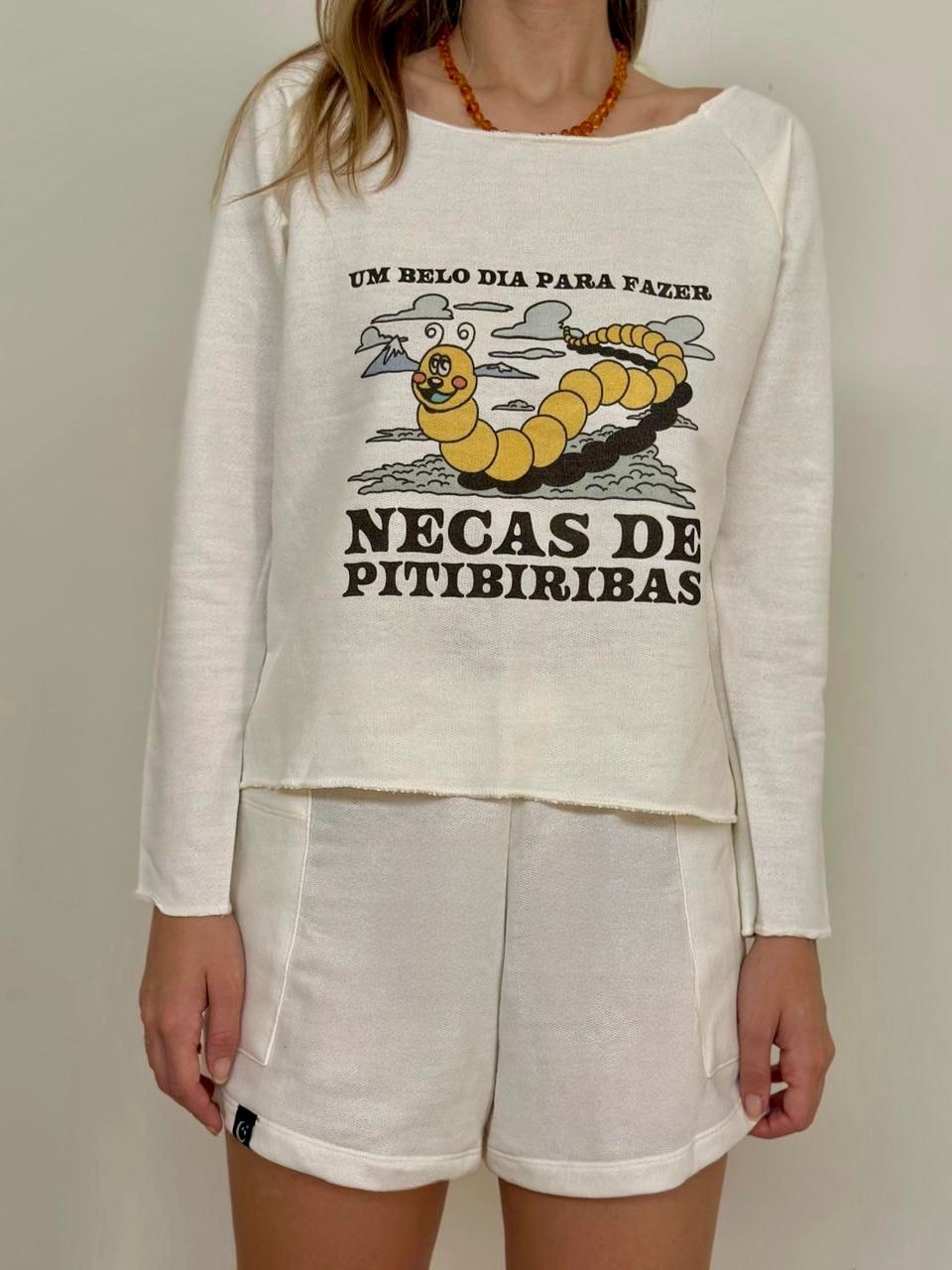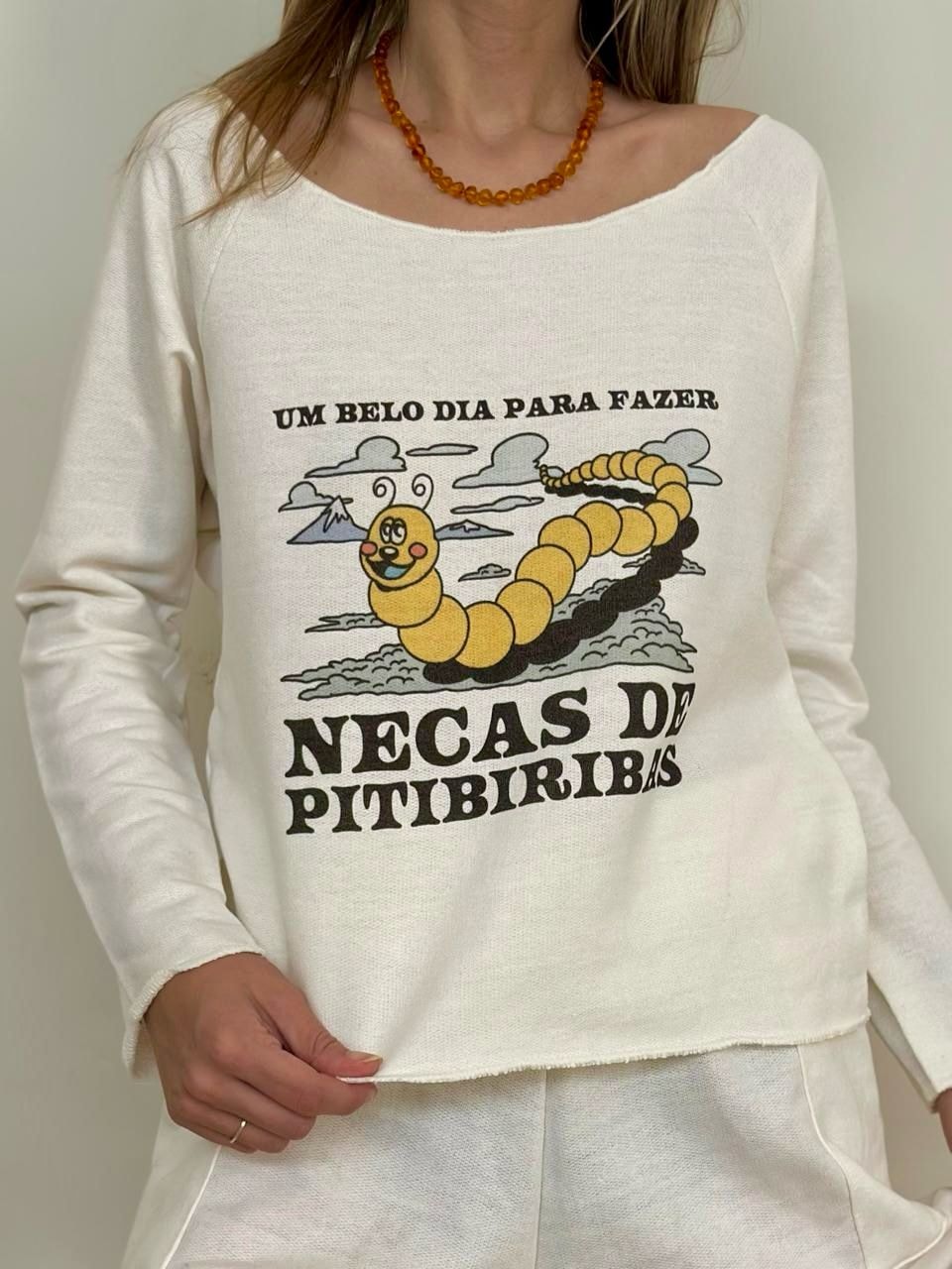 O Moletom Necas de Pitibiribas é pra quem leva a vida no bom humor e não tem medo de soltar um "tô fora!" com personalidade. Feita com tecido macio e caimento leve, ela é aquela peça que combina com tudo — menos com mau humor.