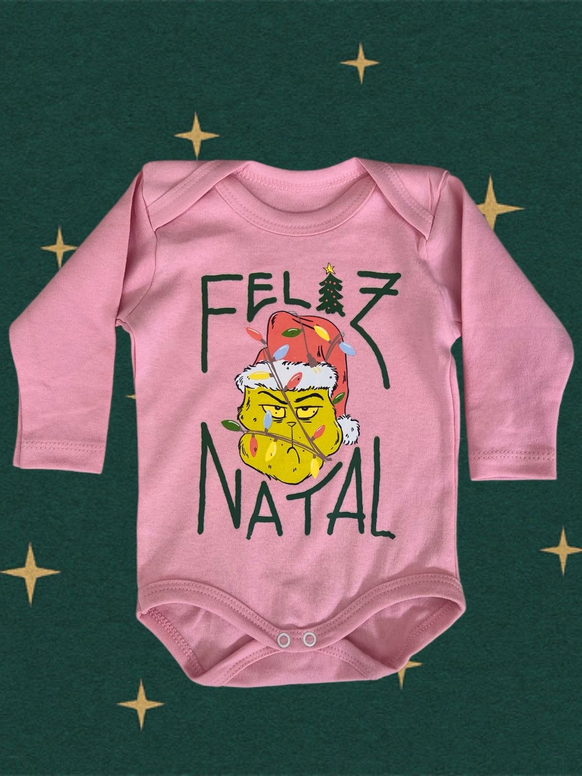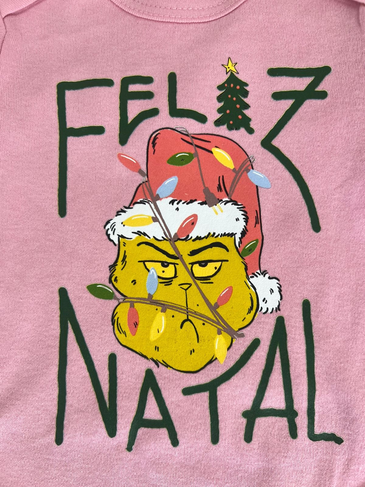 Body Bebê Grinch Feliz Natal - Rosa - Manga Longa