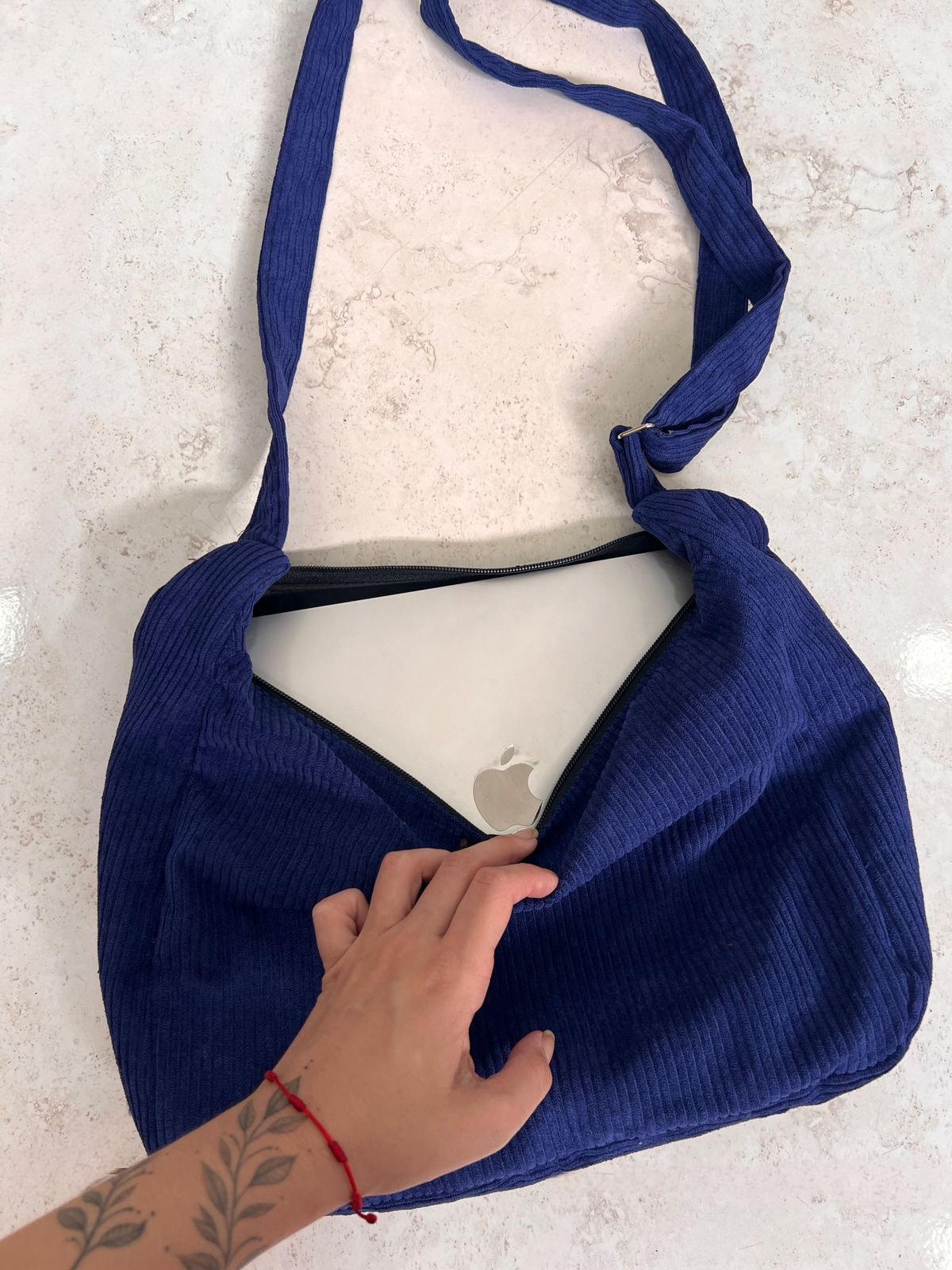 Bolsa Canoa Veludo Cotelê Azul Cobalto - Pato