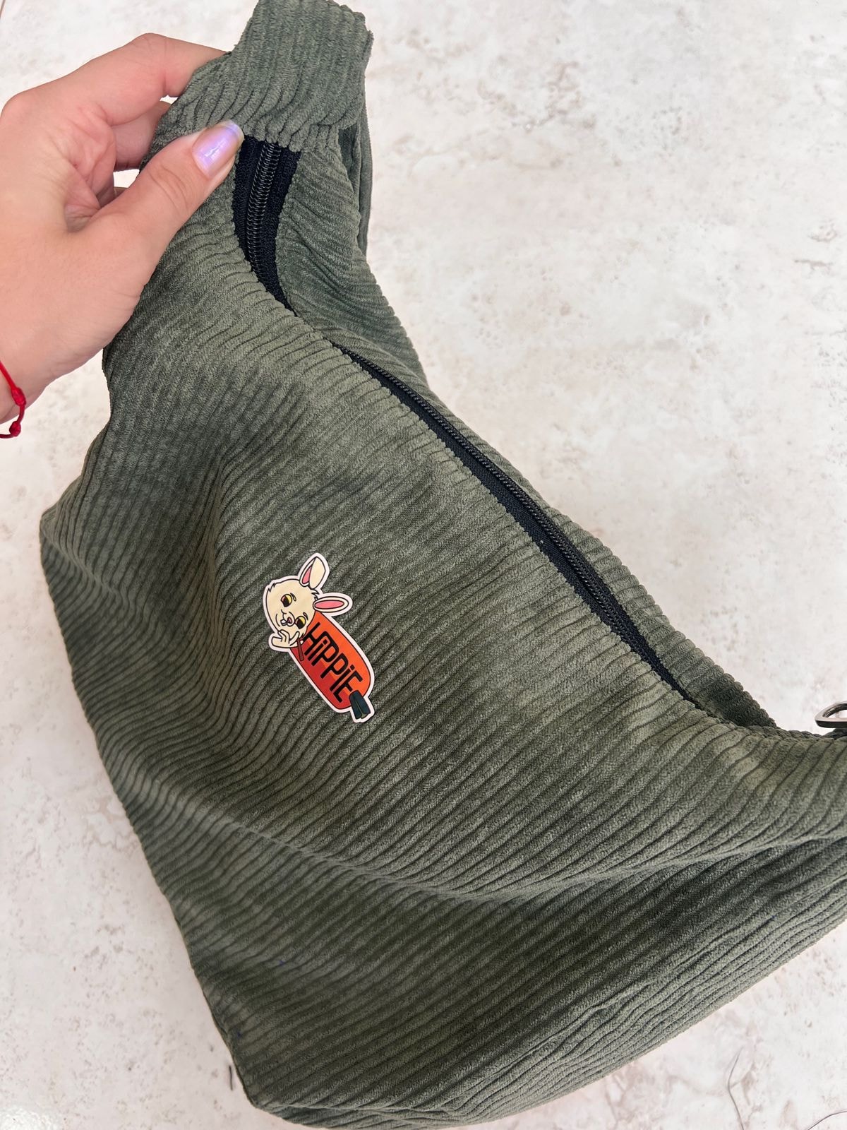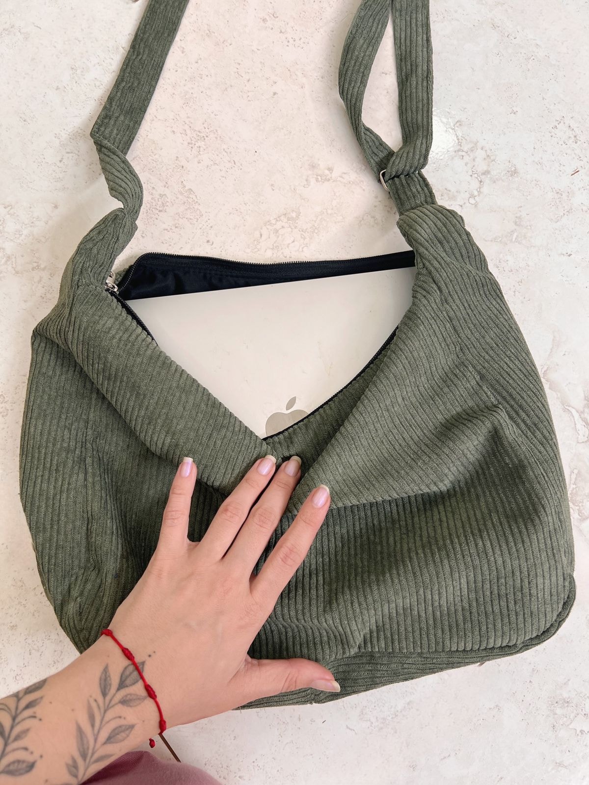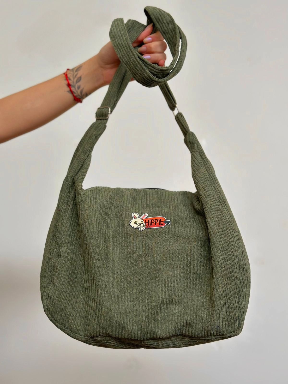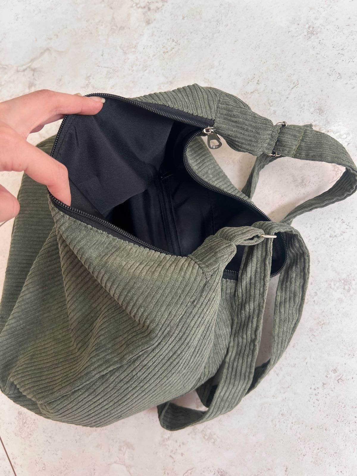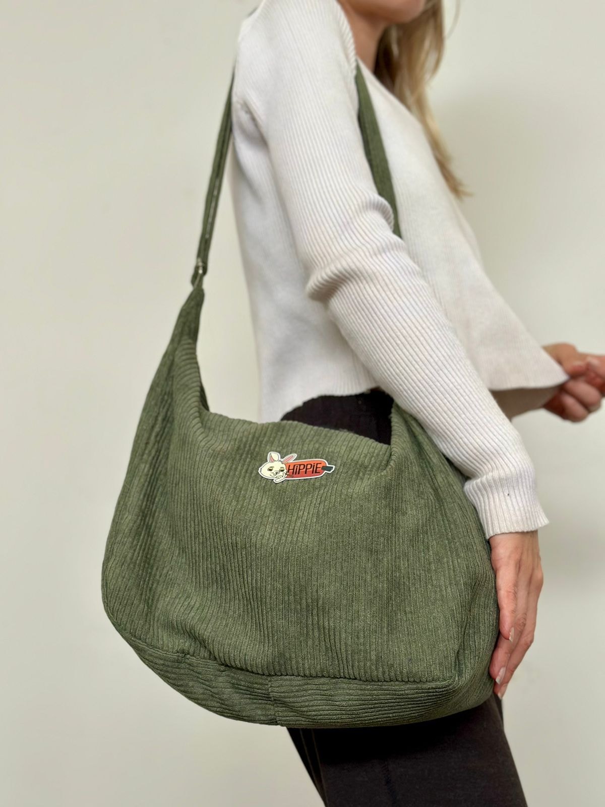 Bolsa tiracolo modelagem Canoa Maxi, em veludo cotelê.