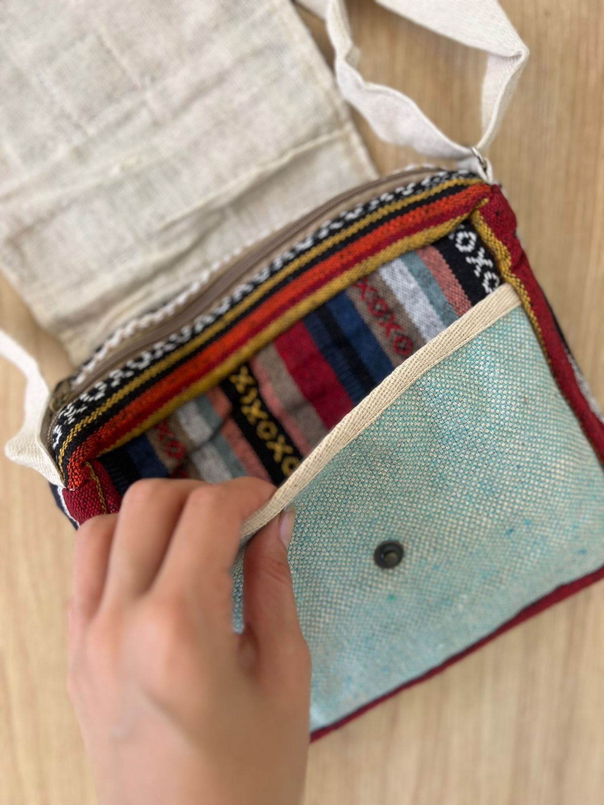 Material: mistura de algodão reciclado e cânhamo selvagem do himalaia.