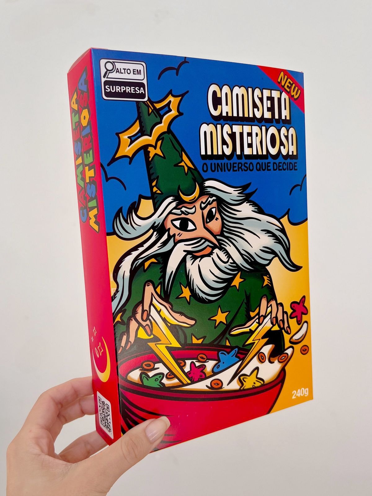 Com design de caixa de cereal e estampa em alta qualidade.
