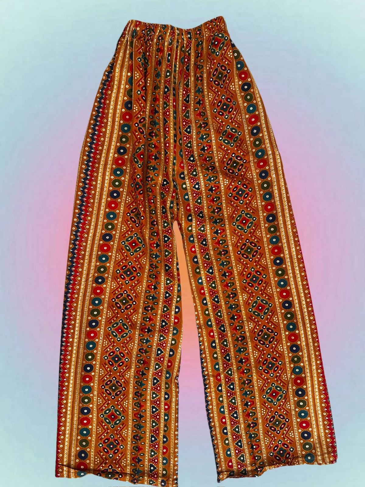A calça indiana da Hippie é estilo pantalona.