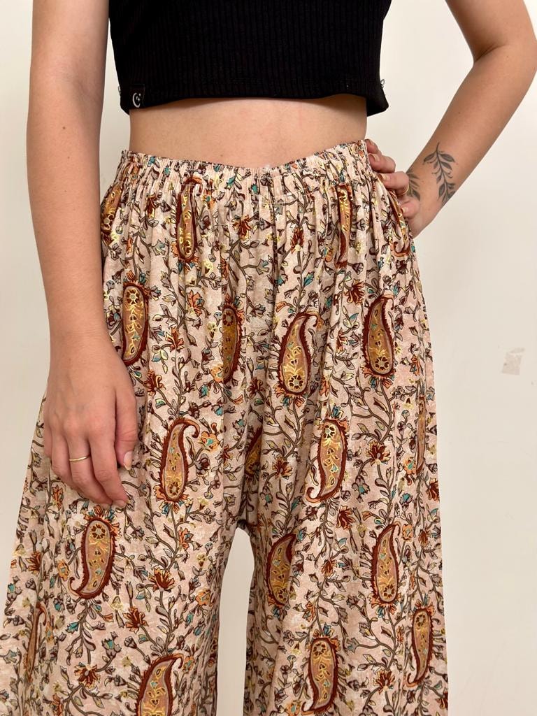 A calça tem linhas finas na cor dourada cintilante, bem típico dos tecidos da Índia <3