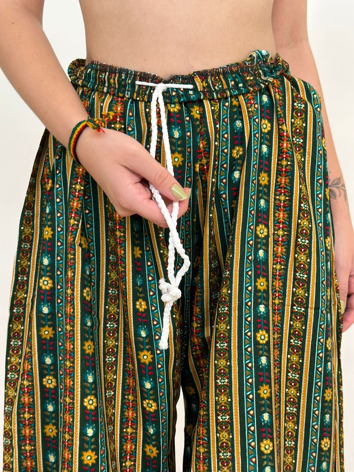 A calça tem linhas finas na cor dourada cintilante, bem típico dos tecidos da Índia <3