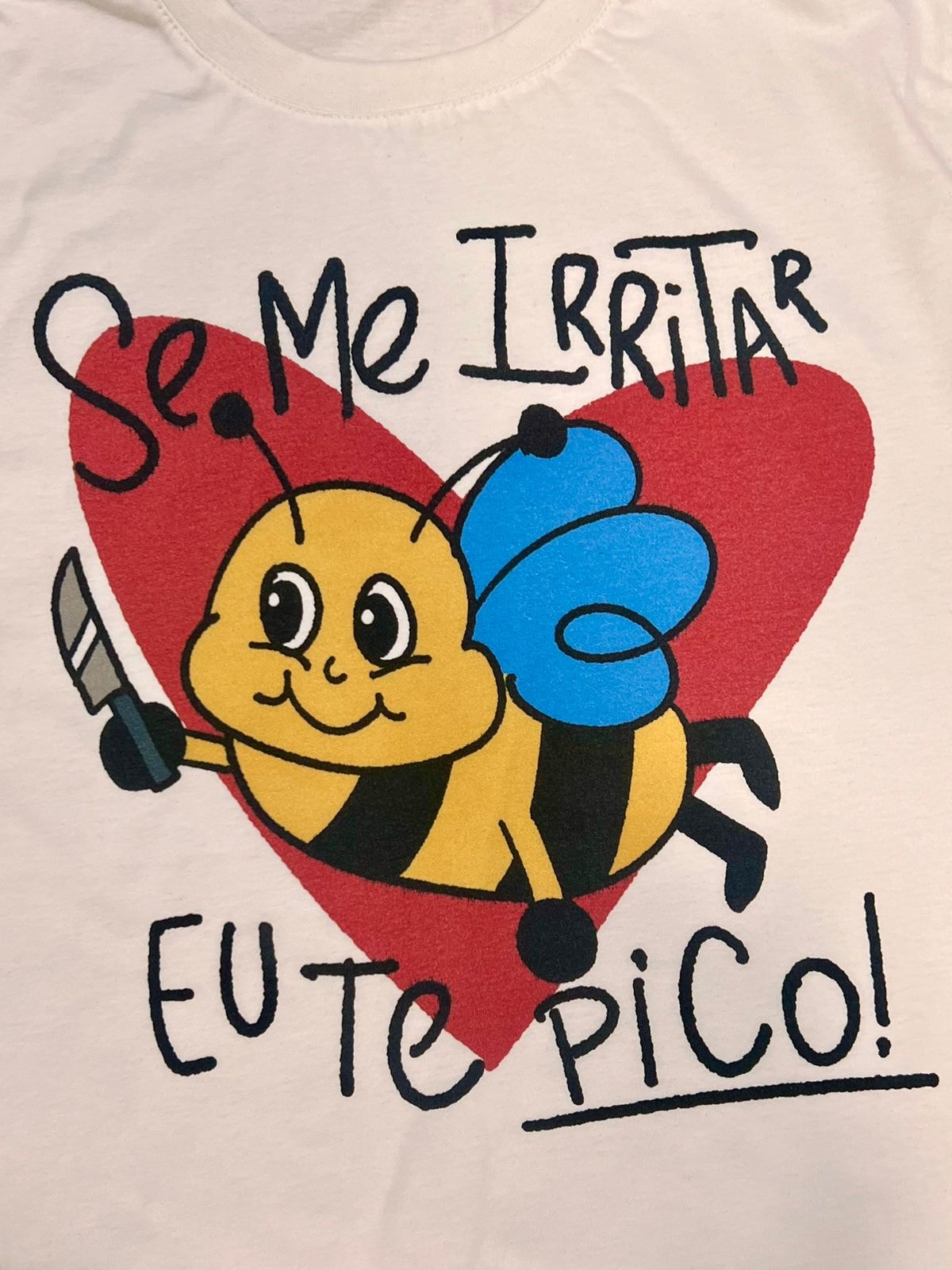 A camiseta Abelha Se Me Irritar é fofa e agressiva.