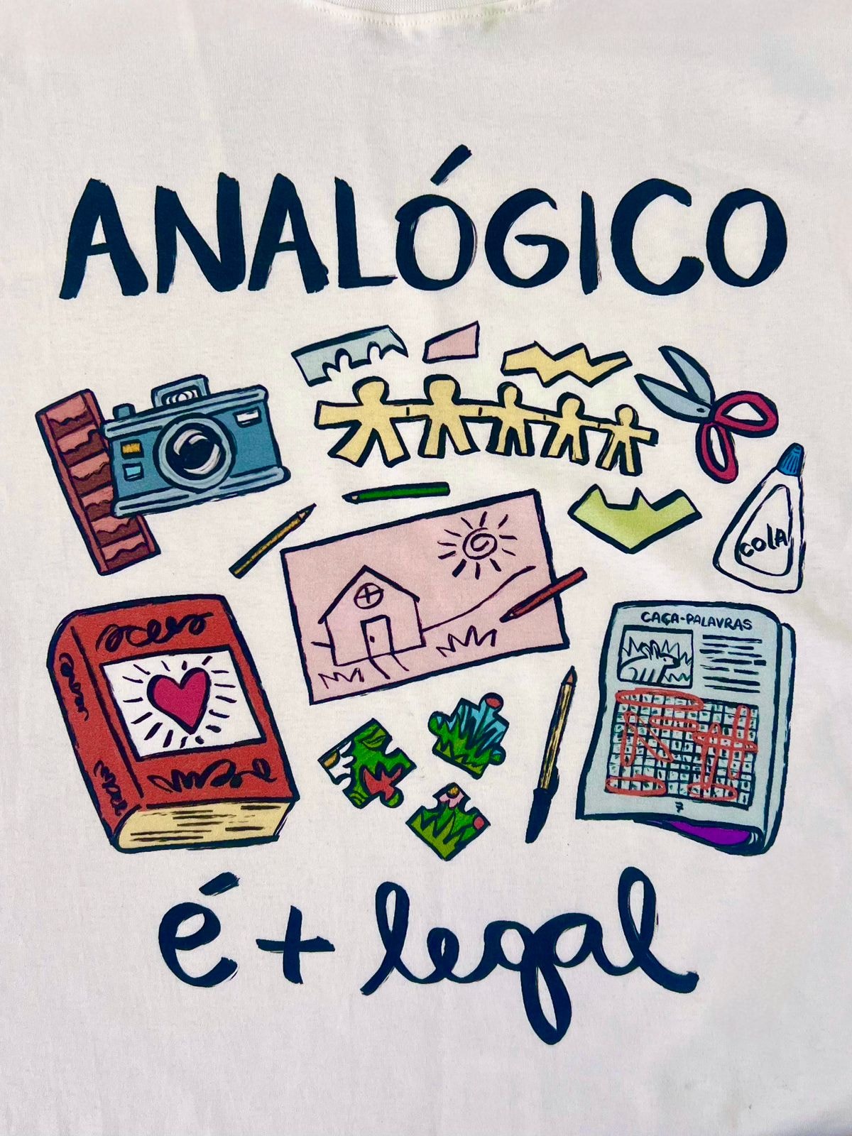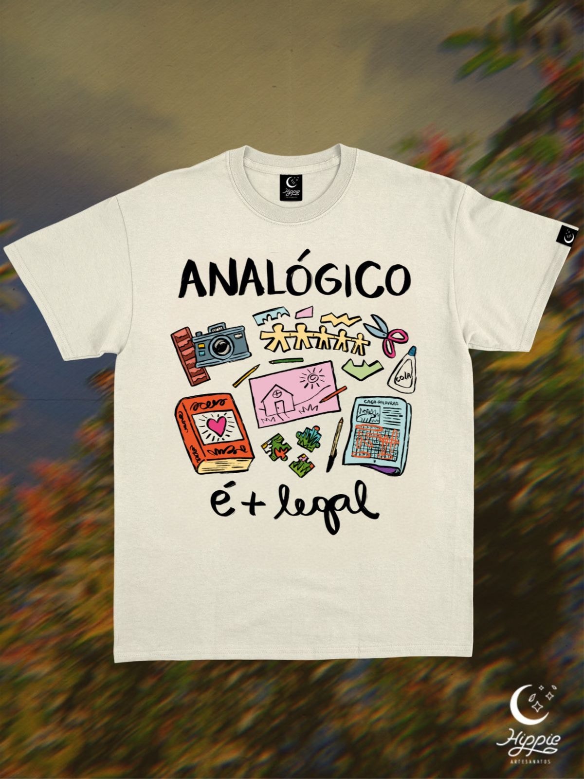 Essa camiseta é pra quem curte fita, vinil, câmera de rolo, livro impresso e aquele cheirinho de passado bom. Porque nem tudo precisa ser digital pra ser incrível, né?