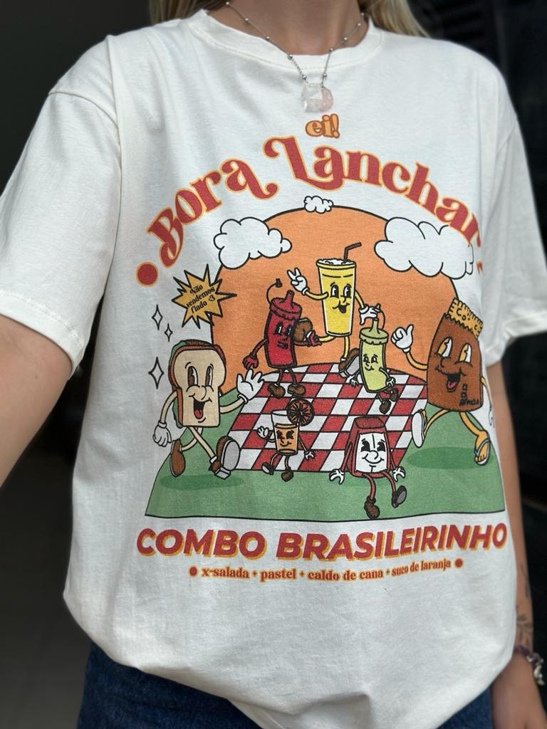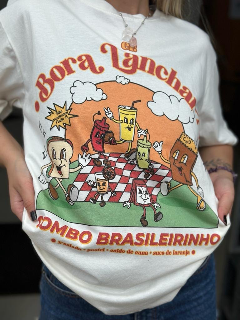 A camiseta Bora Lanchar é uma celebração às comidas típicas das ruas brasileiras.