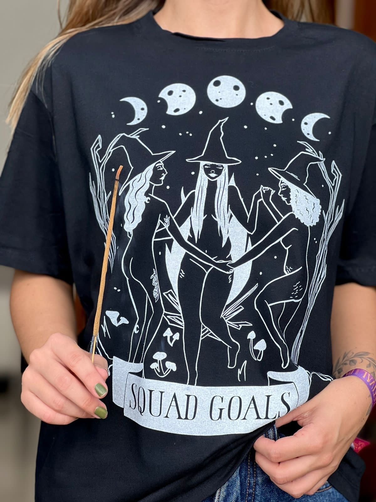 A camiseta Bruxas Para Sempre celebra a união entre mulheres e troca de cuidados e saberes femininos.