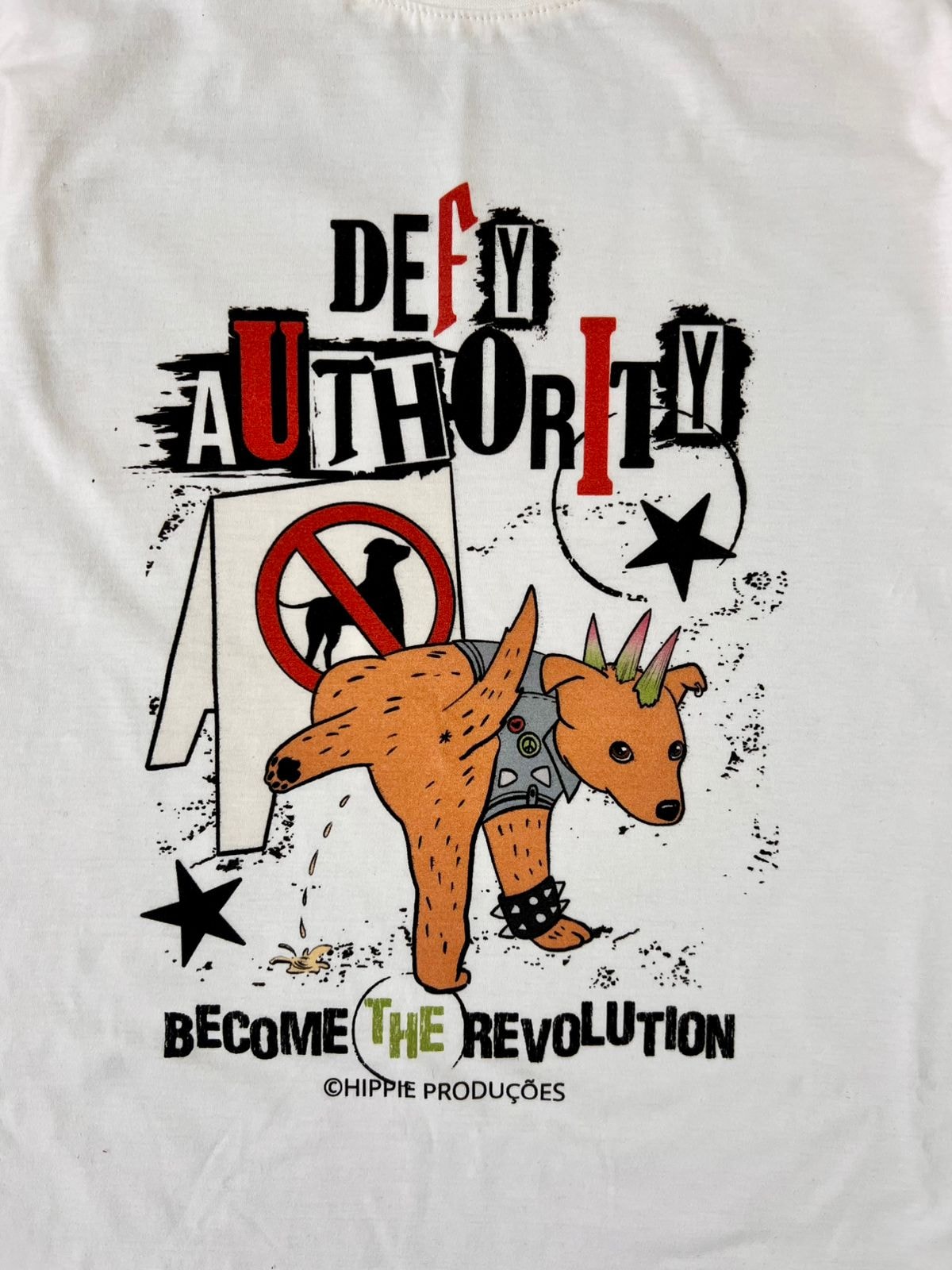 Camiseta Cachorro Punk Defy Authority - Off-White