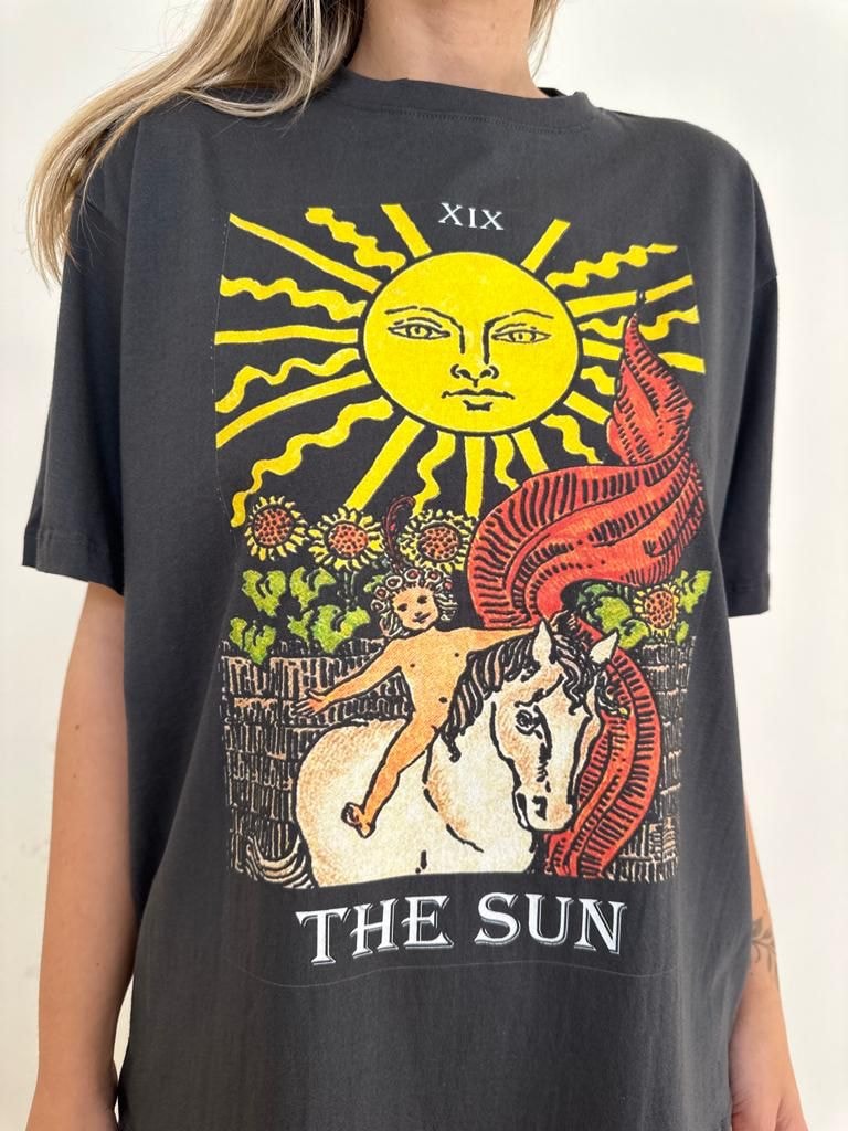 Na representação da carta, o sol representa fonte de vida; a criança representa a essência interior, a pureza e inocência da infância; o cavalo simboliza força; a bandeira vermelha representa paixão e amor; os quatro girassóis representam os quatro elementos.