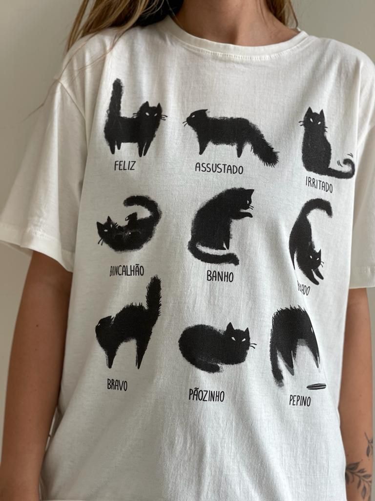 A camiseta Entenda Seu Gato é um guia prático para auxiliar no seu dia a dia com os felinos.