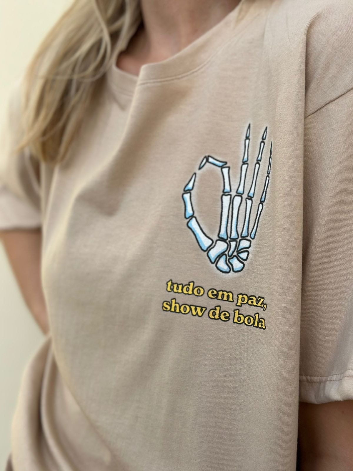 Camiseta Esqueleto Psicodélico - Cáqui - Frente e Verso