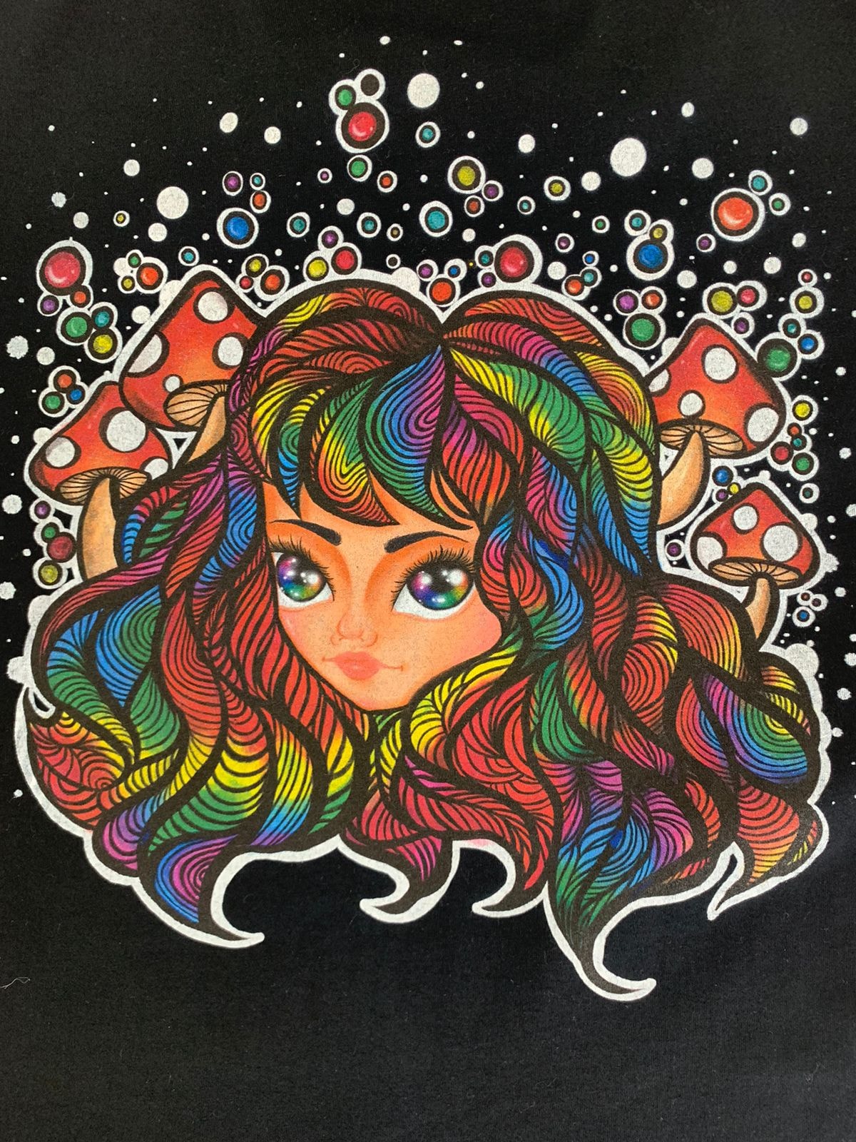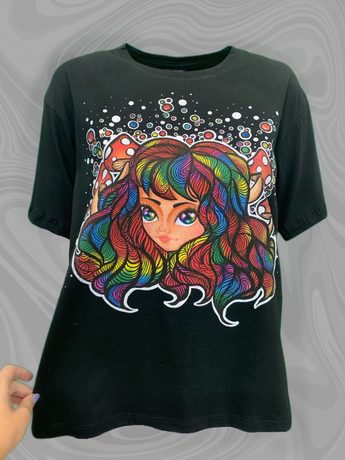Camiseta Fada Psicodélica Cogumelos - Preta