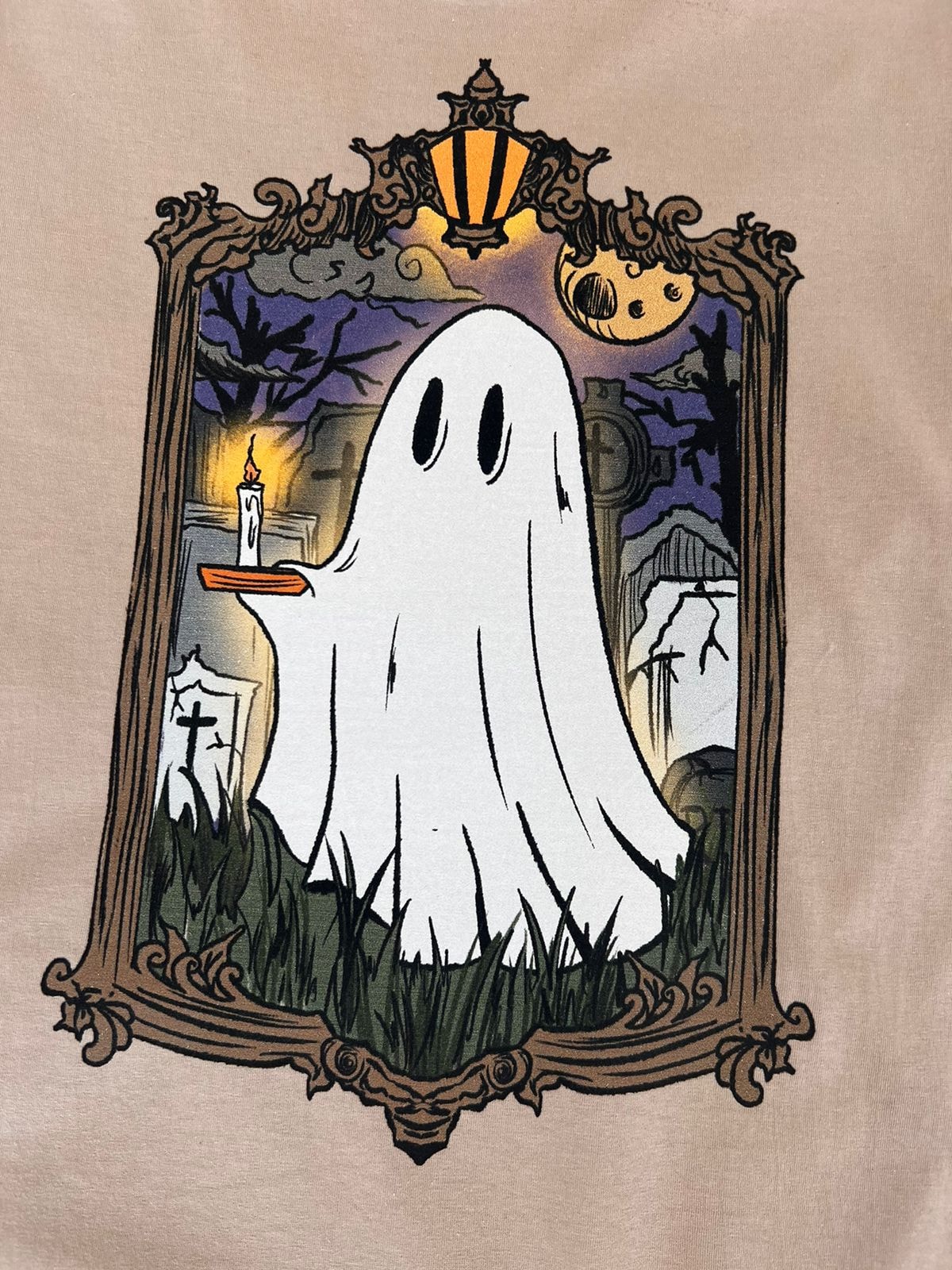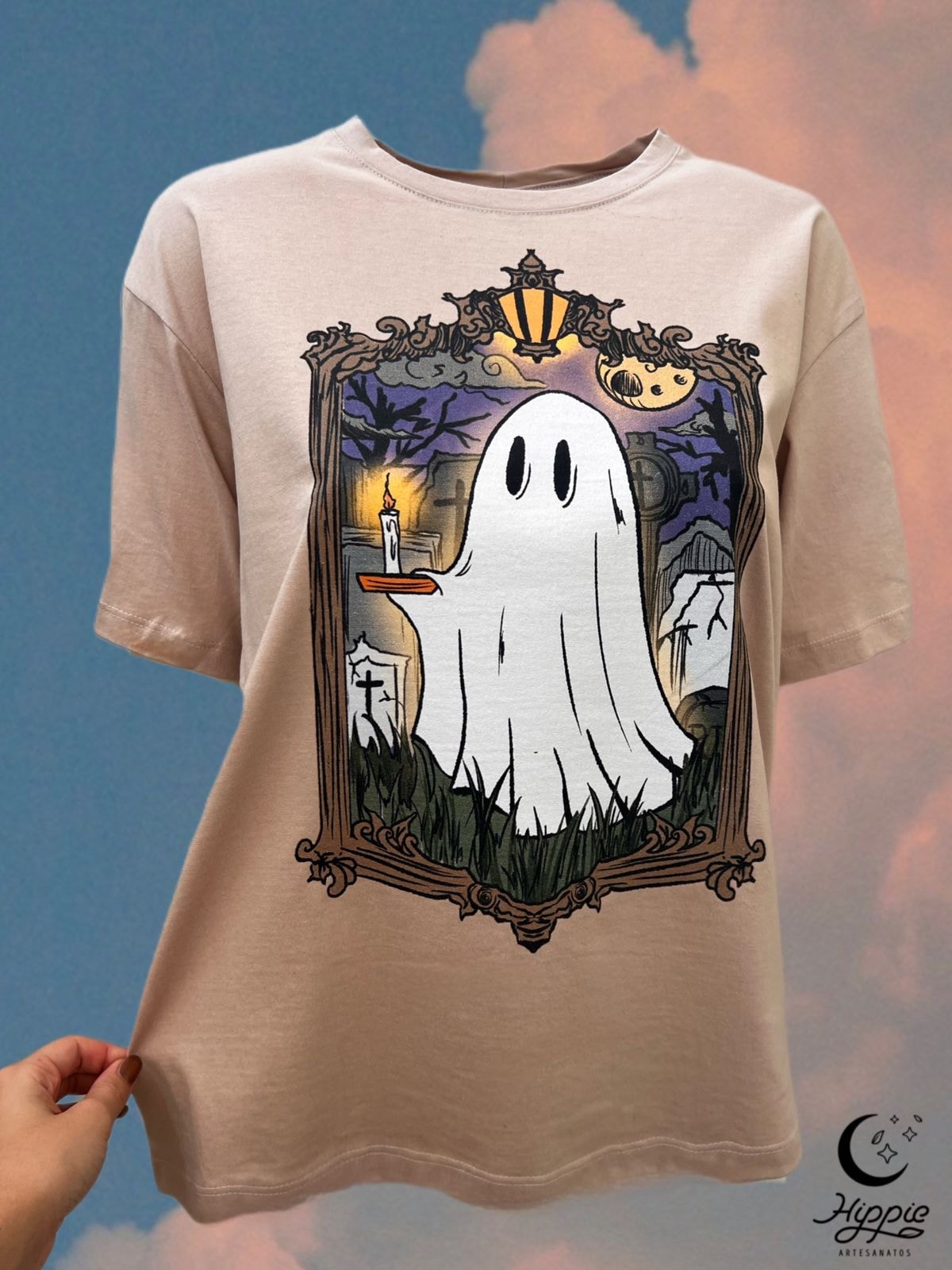 A camiseta Fantasminha Vela foi feita para representar a celebração de halloween e o mundo sobrenatural.