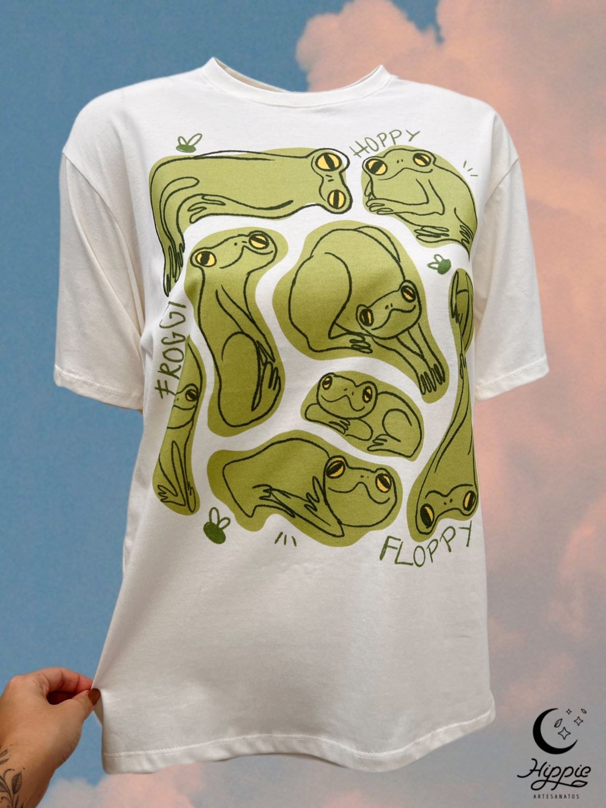 A camiseta Floppy Hoppy Froggy tem uma estampa fofa e divertida destes seres encantados.