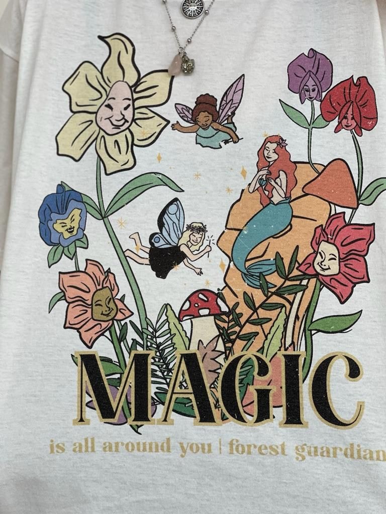 A camiseta Floresta Fest reúne seres encantados da natureza em uma festa mágica :)