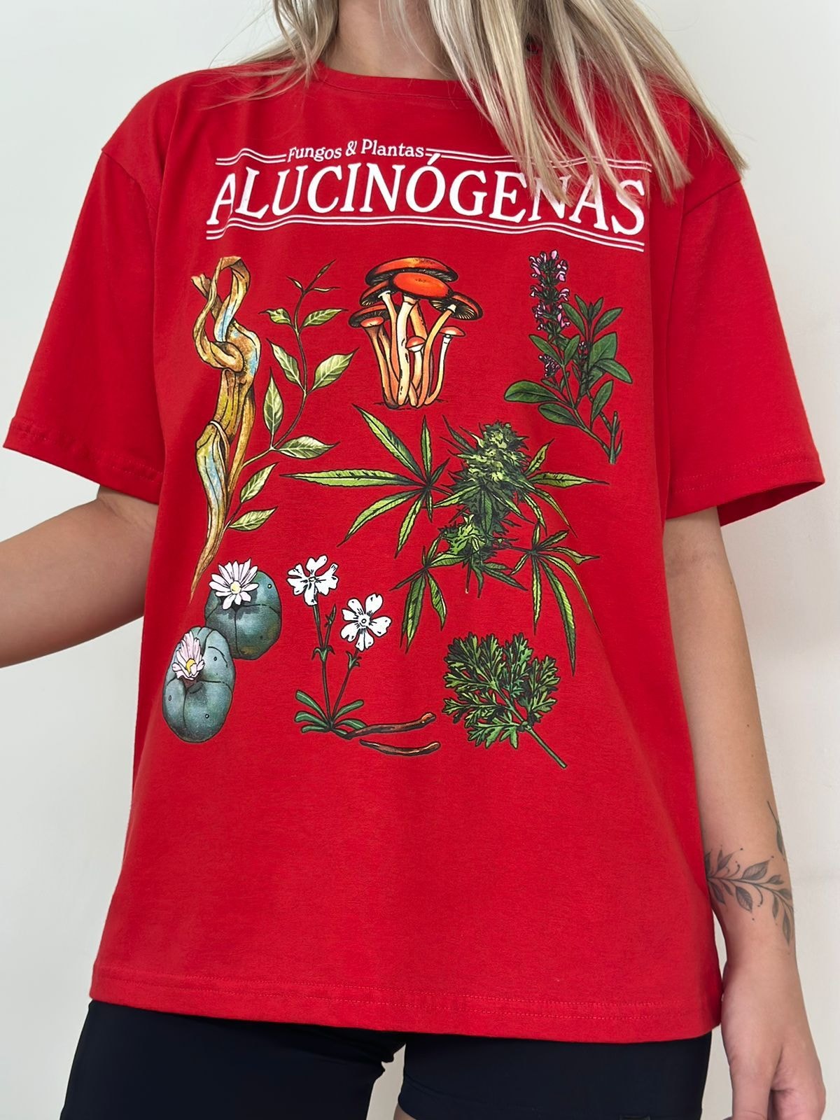 Camiseta Fungos e Plantas Alucinógenas - Vermelha