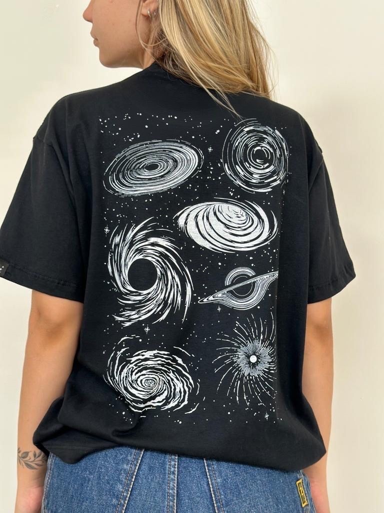 Camiseta Galáxia - Preta - Frente e Verso