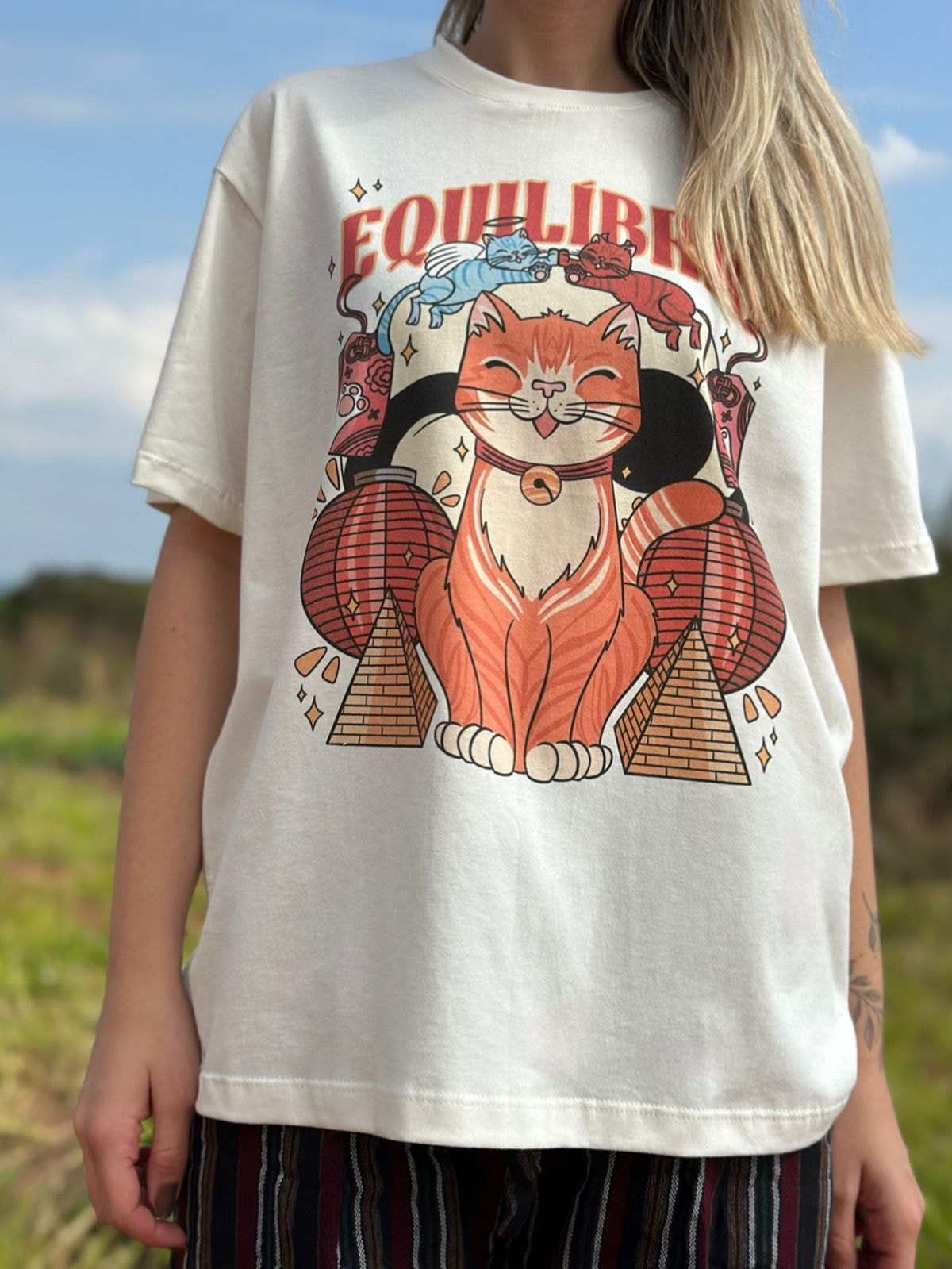 A camiseta Gatinho Equilíbrio atrai a harmonia energética que os gatos trazem para o lar.