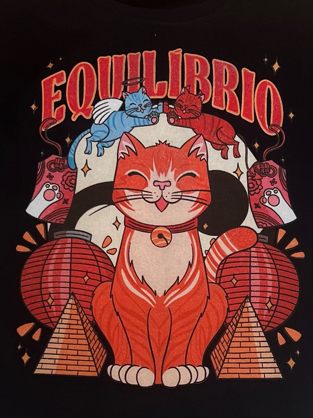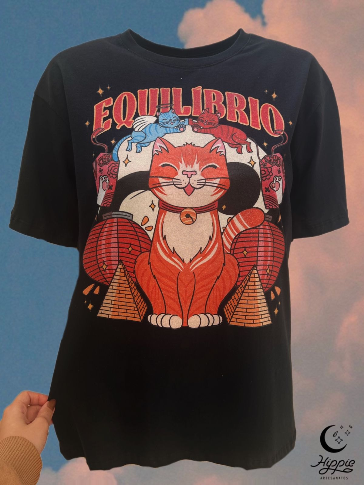 A camiseta Gatinho Equilíbrio atrai a harmonia energética que os gatos trazem para o lar.