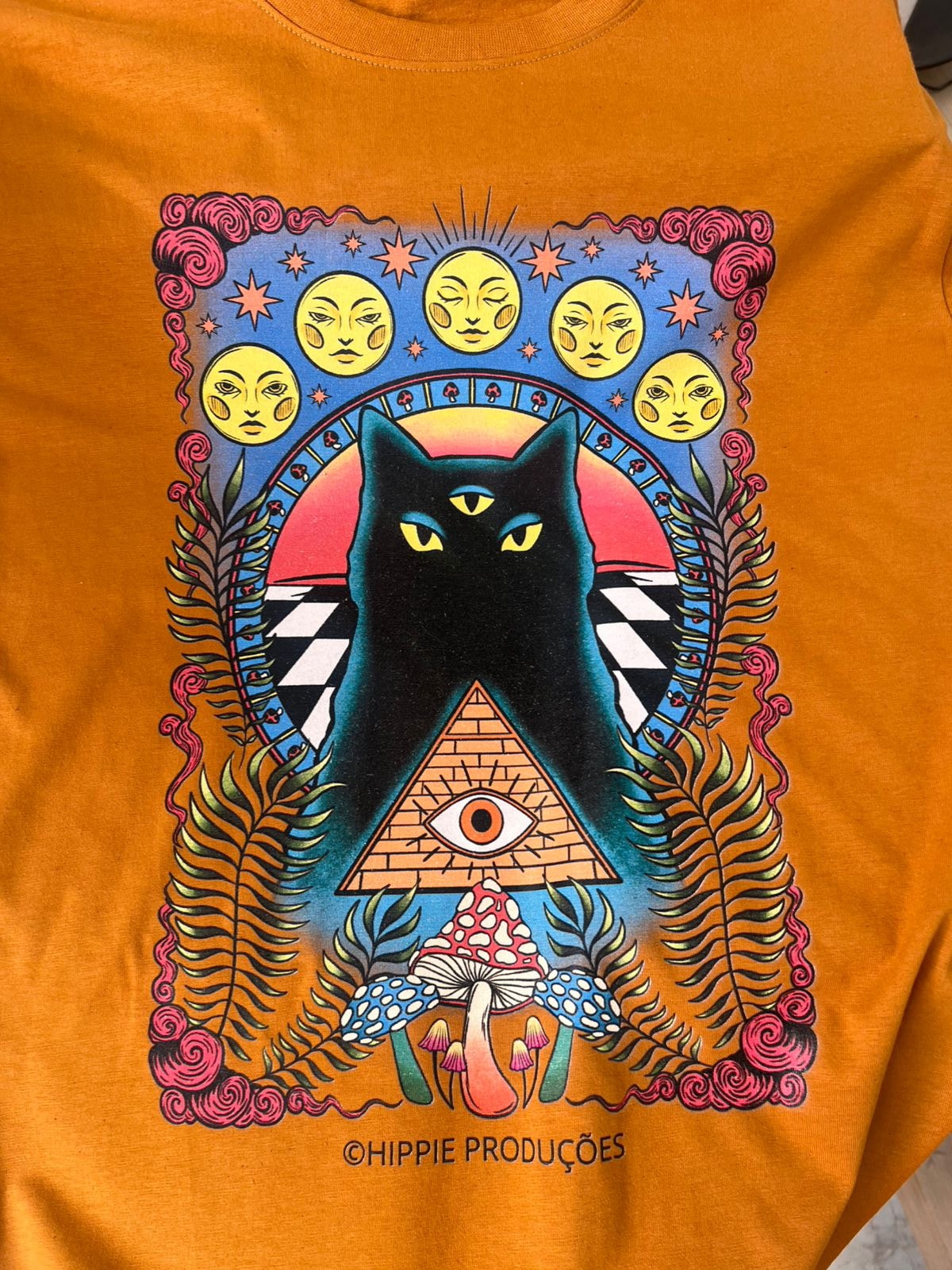 Camiseta Gato Psicodélico - Caramelo
