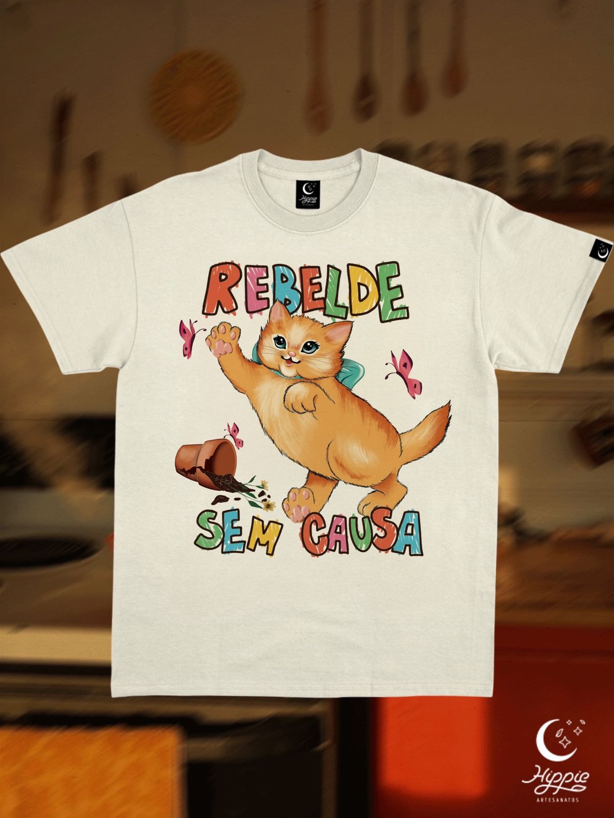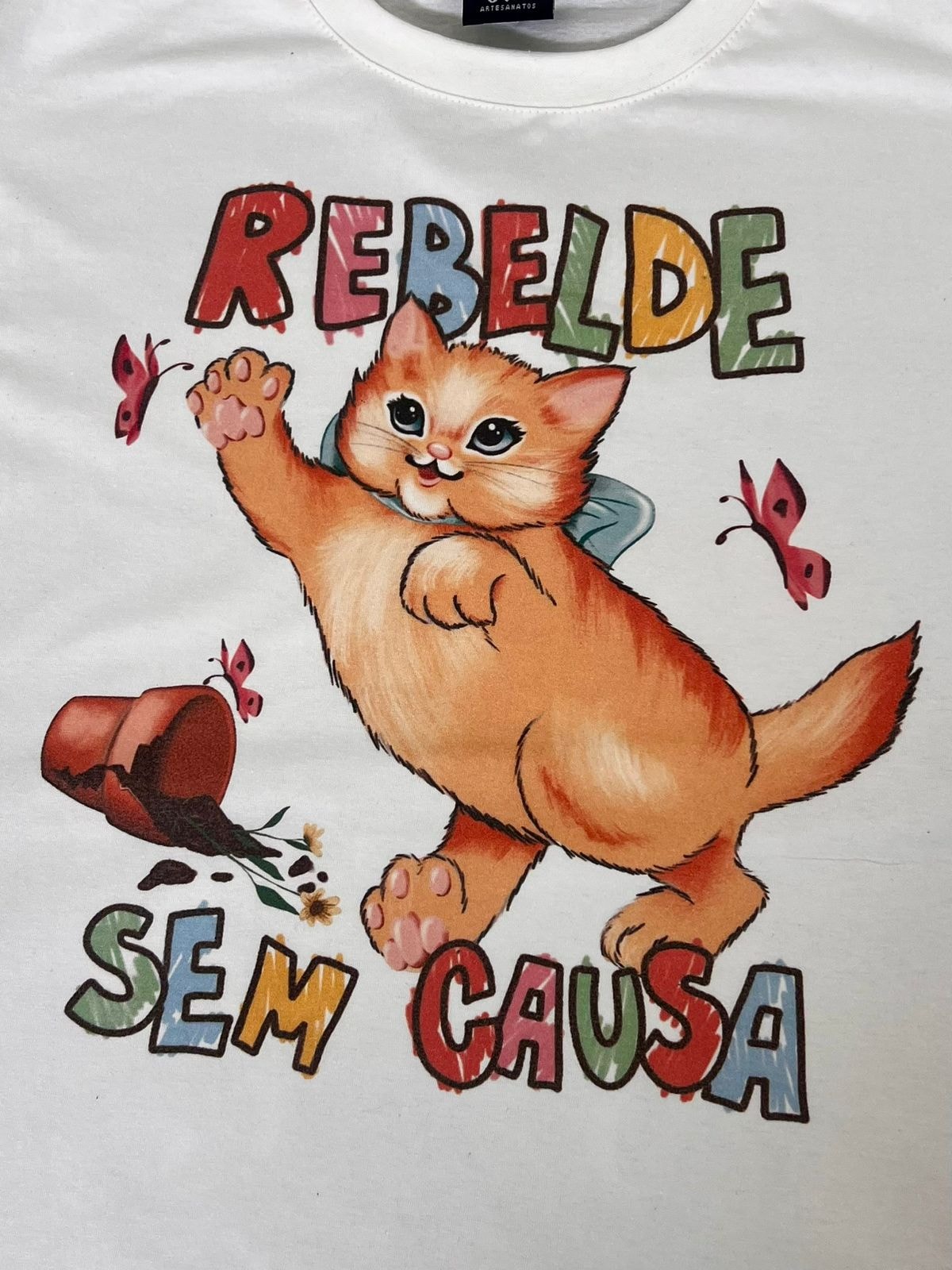O gatinho rebelde dessa camiseta quer apenas quebrar, rasgar e arranhar tudo por diversão.