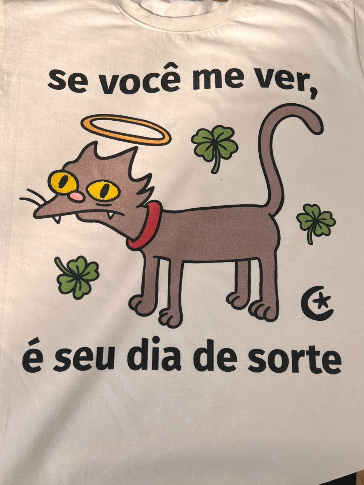 Estampa em DTG, última tecnologia. Não desbota, não descasca, toque zero.