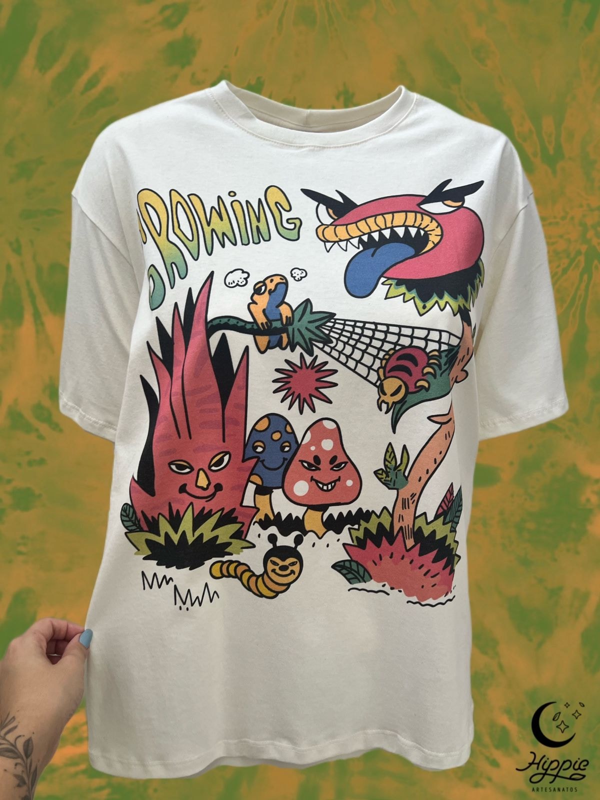 A camiseta Growing representa a natureza, porque ninguém melhor do que ela para falar sobre ciclos, fases e desenvolvimento fluido e orgânico.