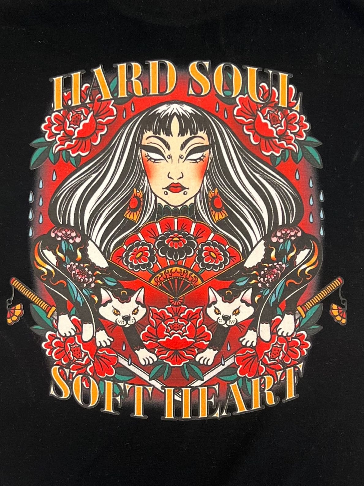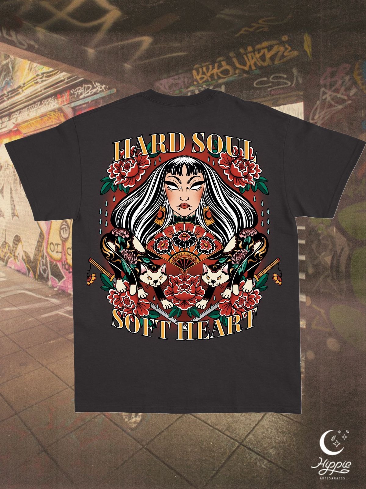 Camiseta Hard Soul Soft Heart - Preta - Frente e Verso