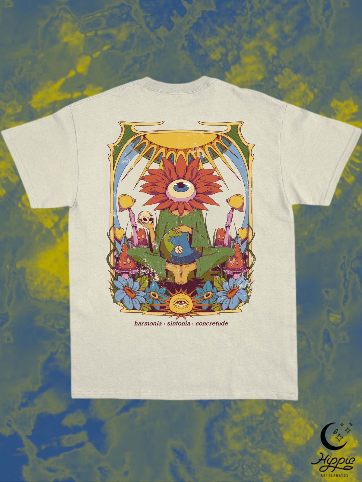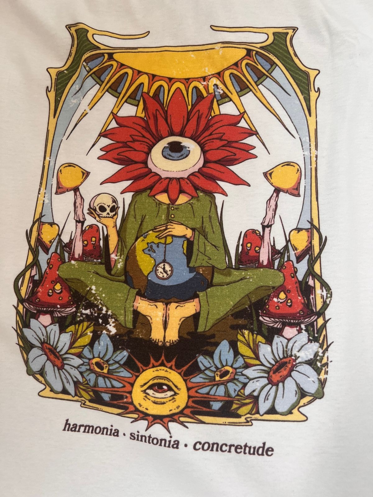 Camiseta Harmonia, Sintonia e Concretude - Off-White - Frente e Verso