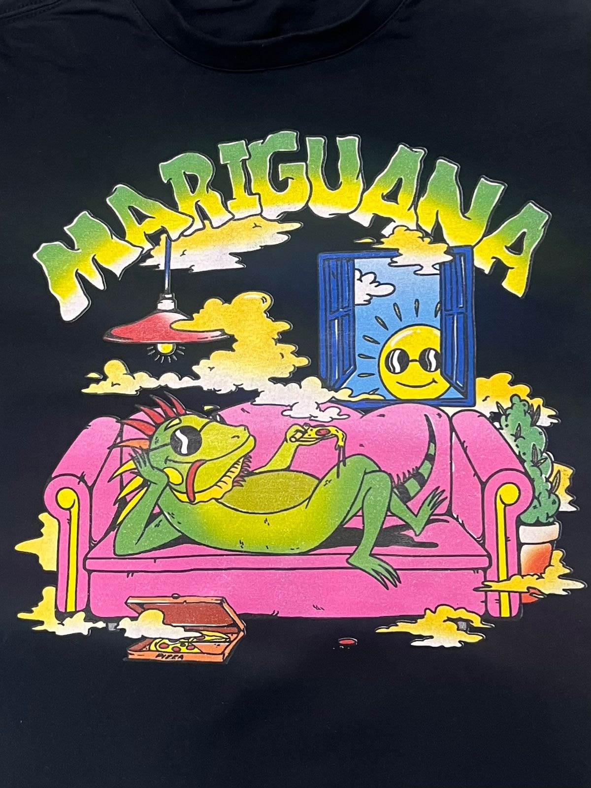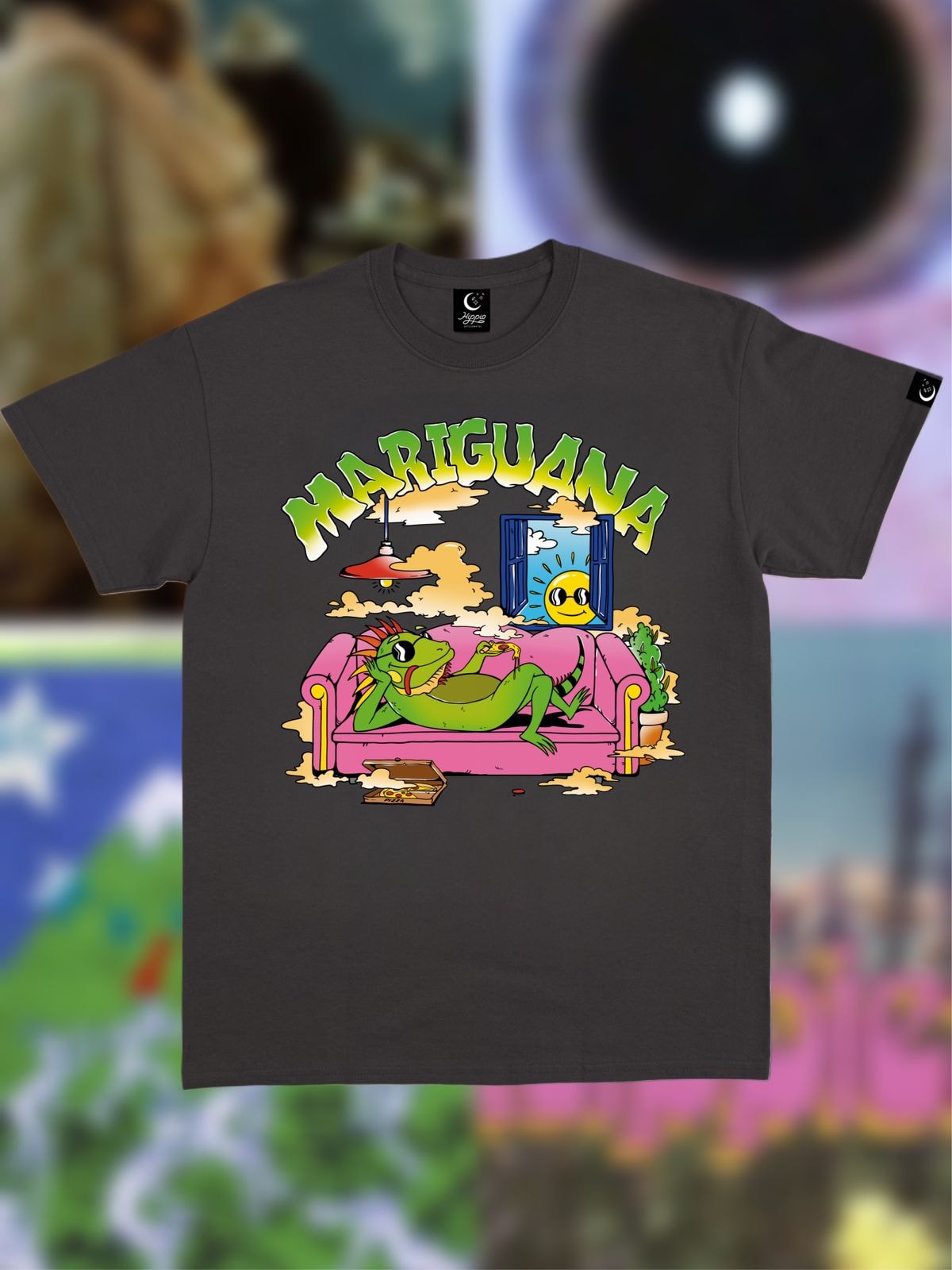 A camiseta Mariguana é estampada com uma iguana bem tranquila.