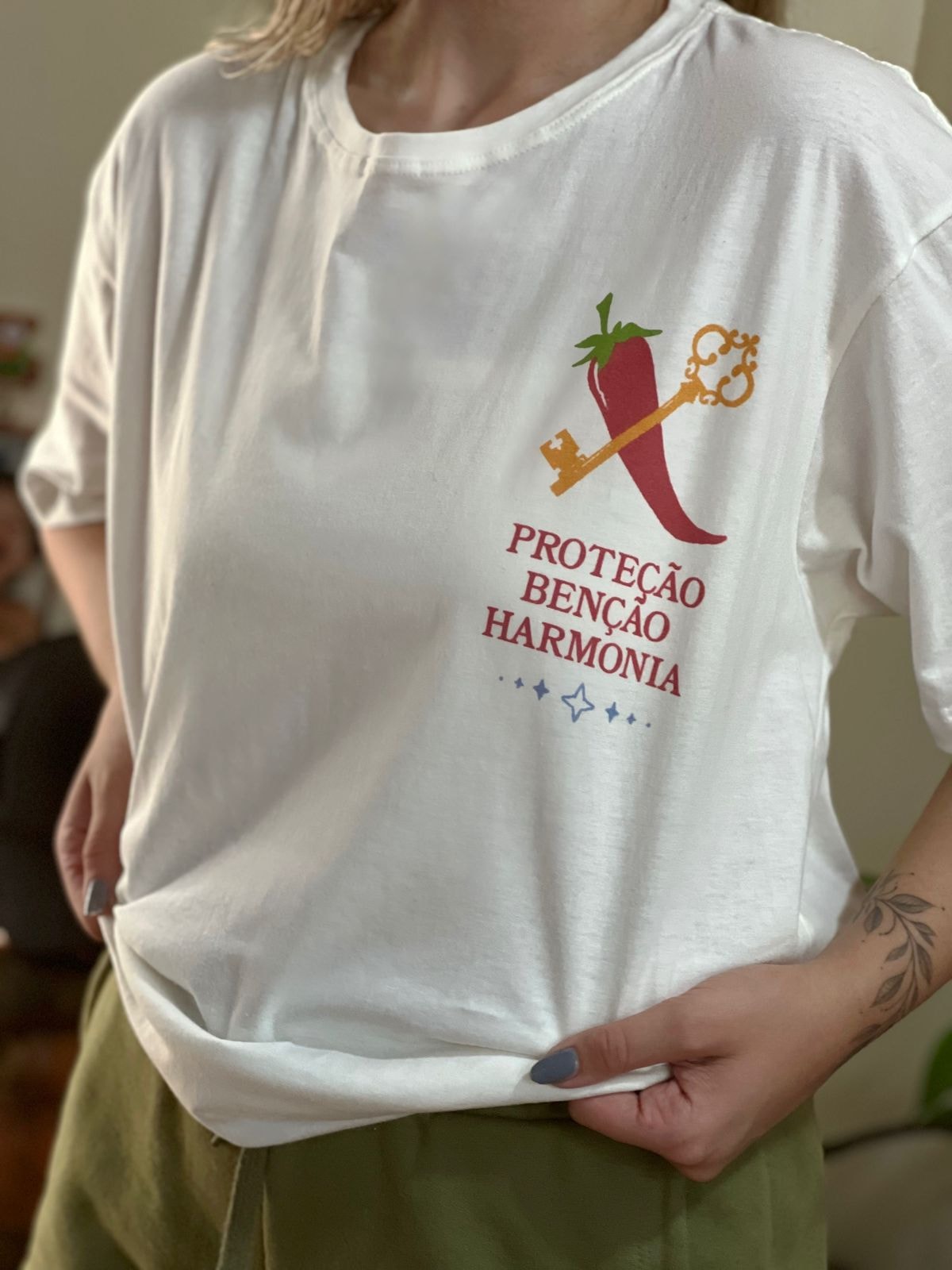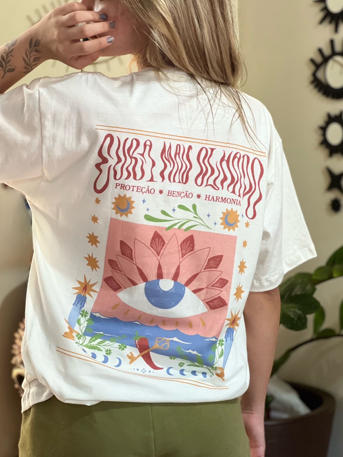 A camiseta Mau Olhado foi pensada para afastar as energias negativas de quem a usar.