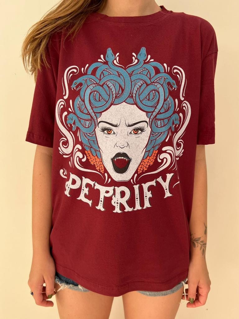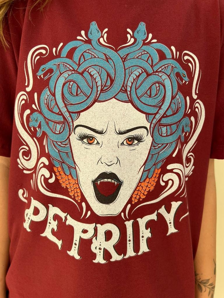 Medusa teria sido uma das mulheres mais belas da Grécia. Na mitologia grega, é retratada como uma mulher trágica e solitária, com serpentes no lugar dos cabelos e olhos que transformam em pedra quem os olha diretamente.