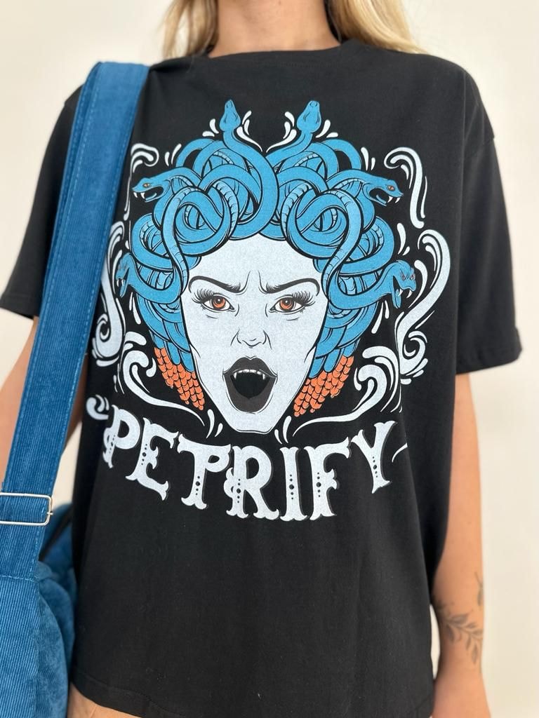 Nossas camisetas possuem padrão de tamanho Unissex.