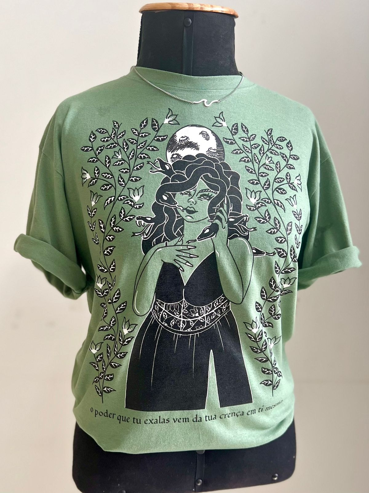 Camiseta Medusa Xilogravura - Verde Alecrim
