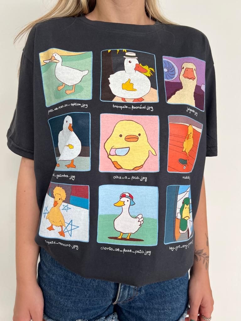 A camiseta Memes de Patos é estampada com patos em vários moods que nos representam no dia a dia. Tem pato de todo jeito: tranquilo, perigoso, radical, julgador, descolado.
