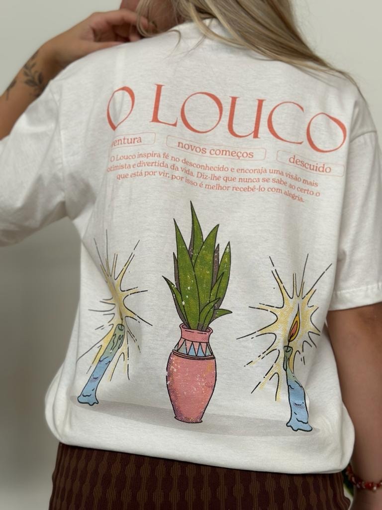 Camiseta O Louco Otimista - Off-White - Frente e Verso