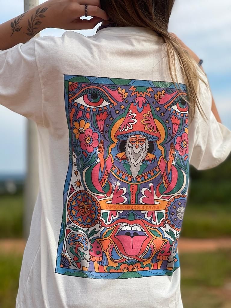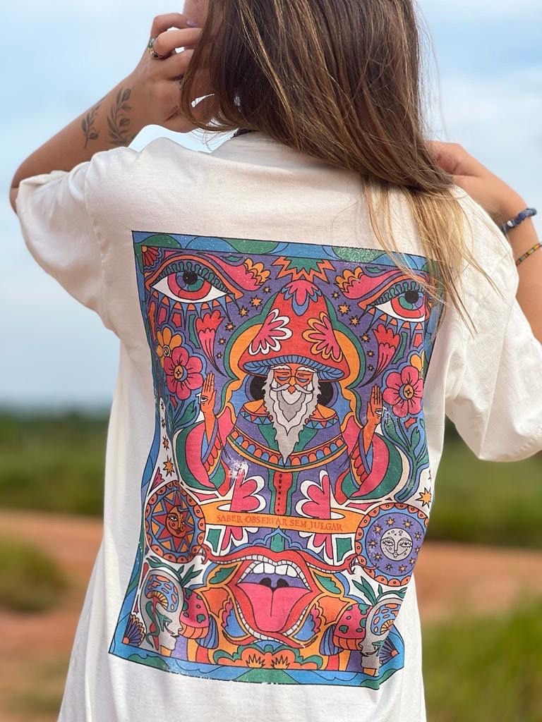 Camiseta Observar sem Julgar - Off-White - Frente e Verso