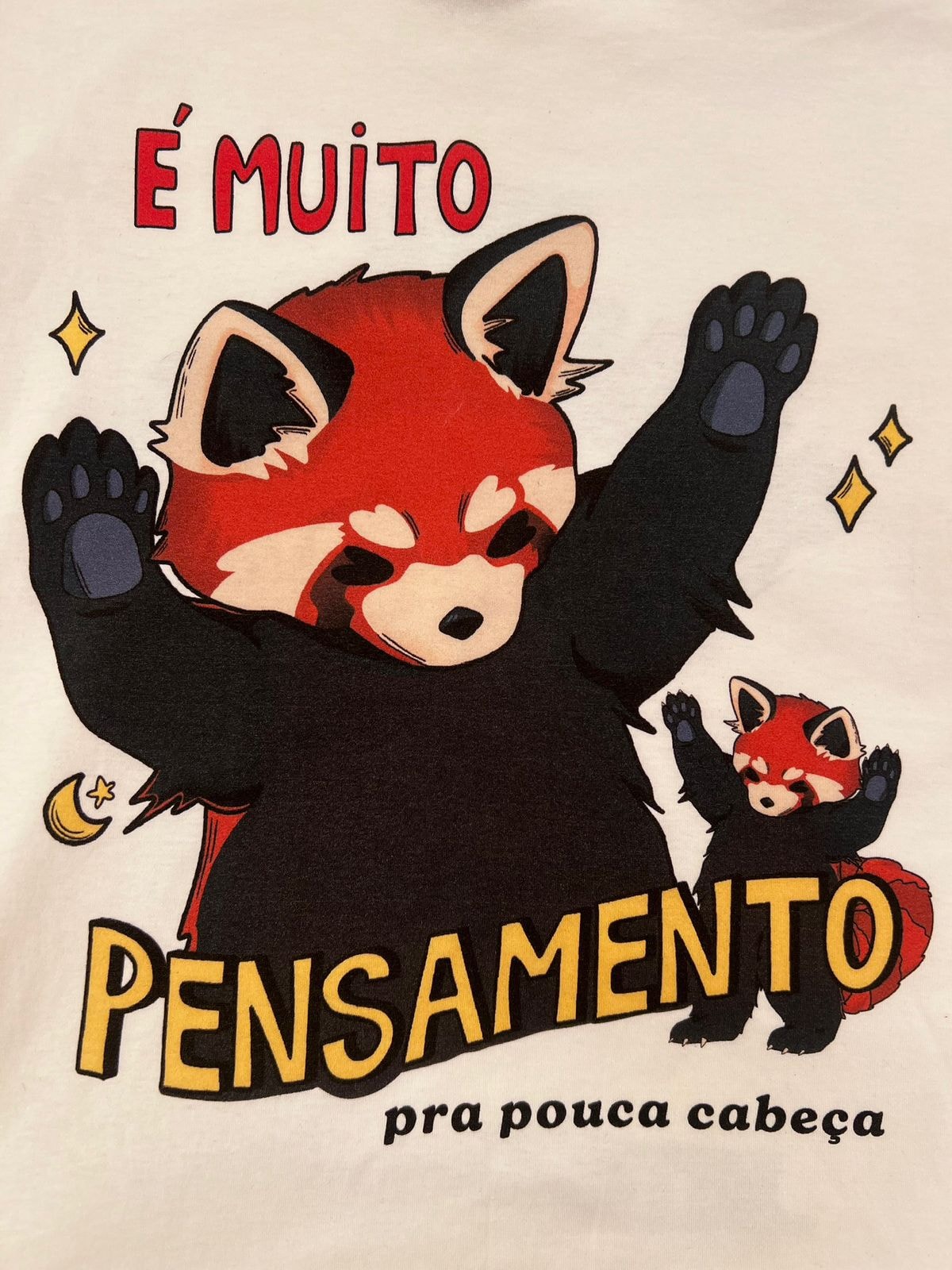 A Camiseta “Panda É muito Pensamento” é pra quem vive no modo filósofo ansioso: mil ideias por minuto, zero conclusões. Uma ode à mente acelerada e àquela famosa bugada existencial das 3 da manhã.