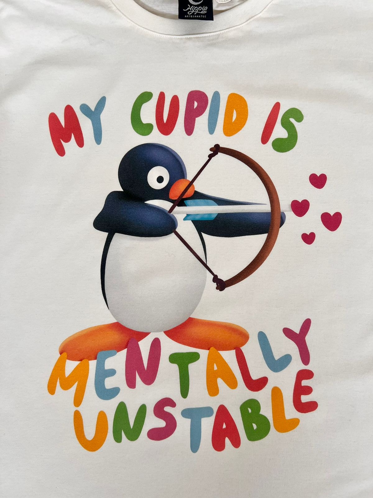 Camiseta Pingu Cupido oferece conforto e estilo para quem abraça a loucura do amor. Ideal para mostrar que, no fim das contas, todos somos um pouco cupido... com um toque de instabilidade!