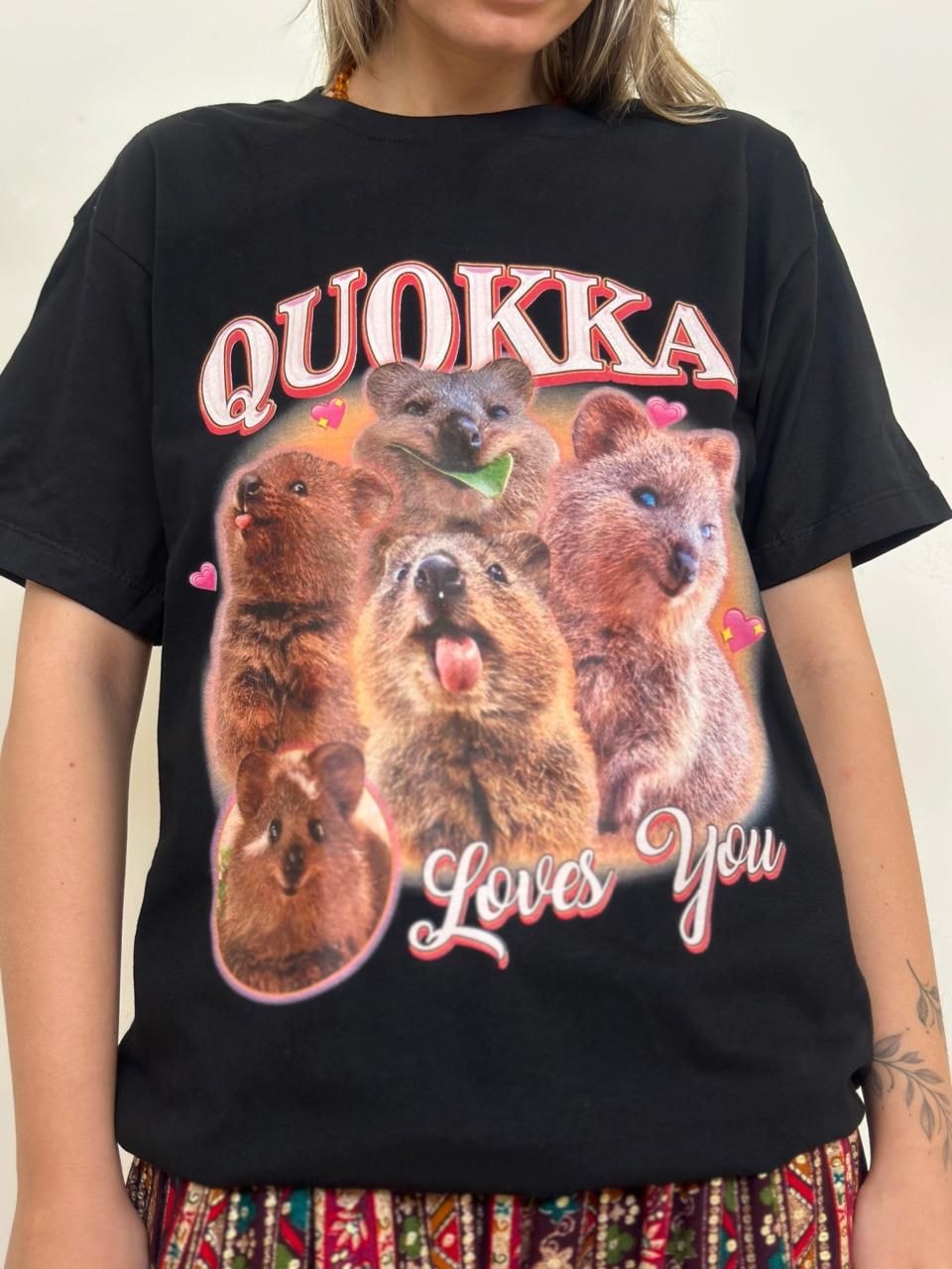Inspirada no quokka, o animal mais simpático da Austrália (e talvez do planeta), essa camiseta traz leveza e bom humor pra qualquer look.