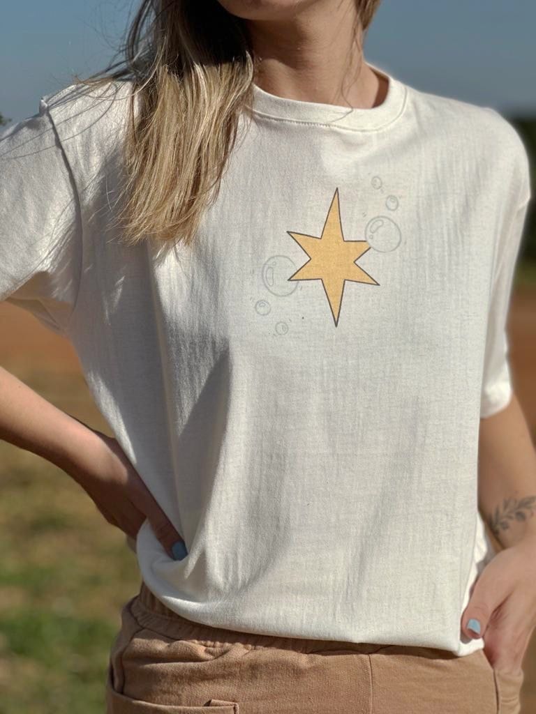 Nossas camisetas possuem padrão de tamanho Unissex.