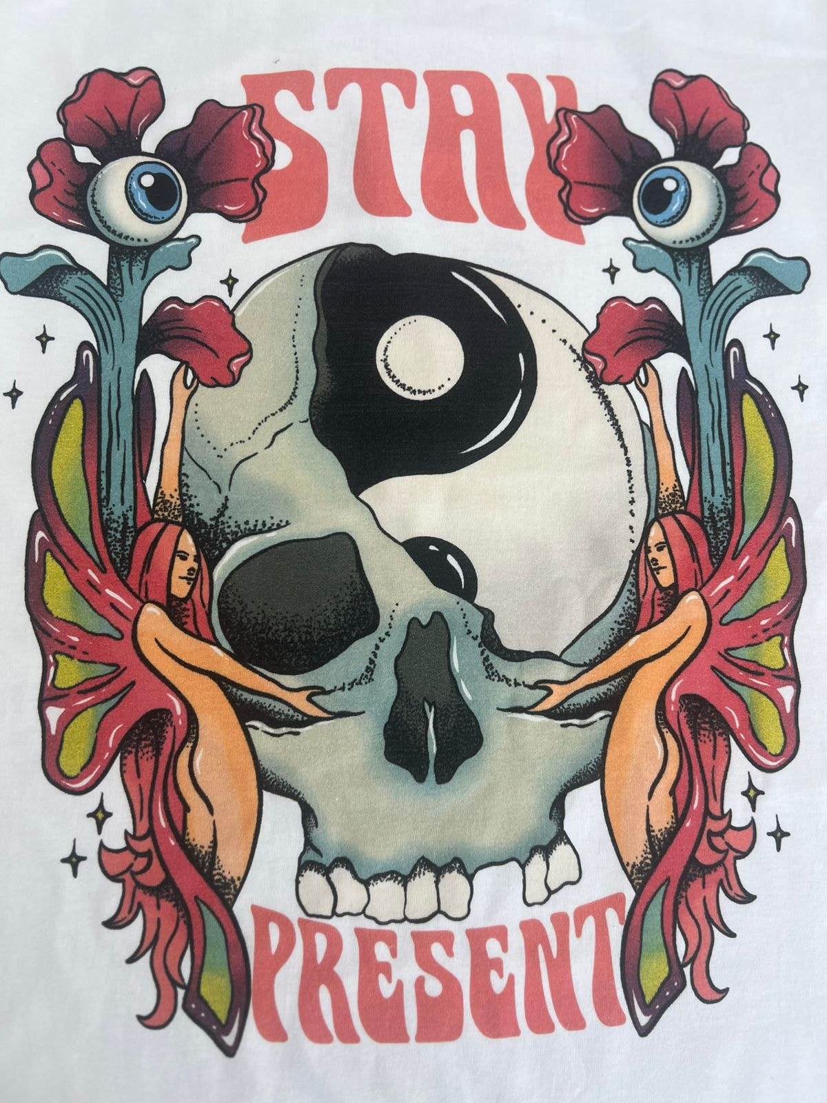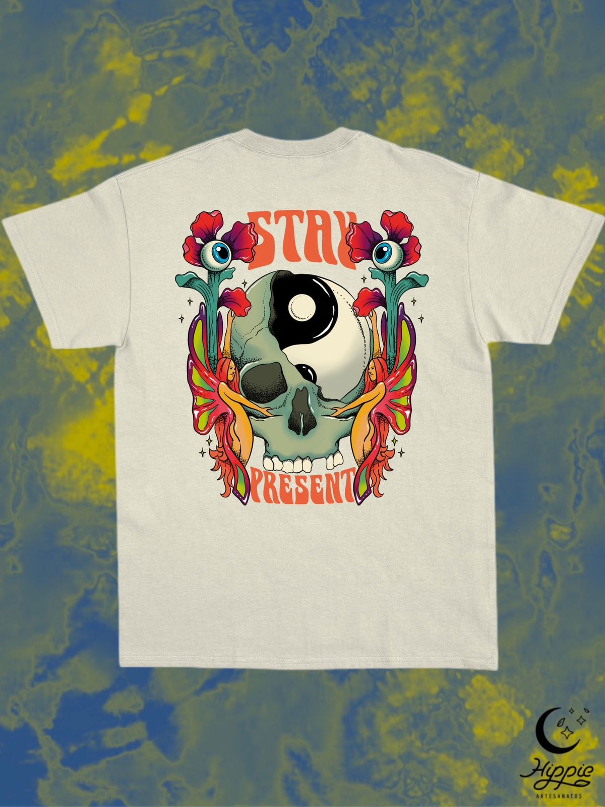 Camiseta Stay Present - Off-White - Frente e Verso