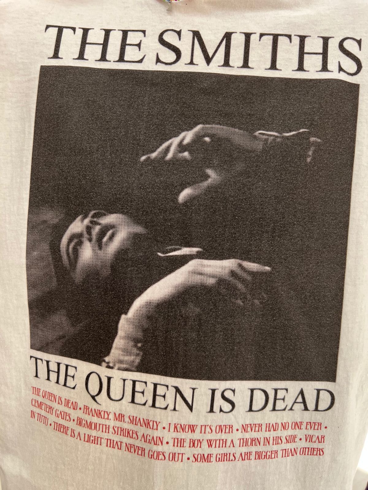 A camiseta The Smiths traz o álbum mais icônico da banda: The Queen Is Dead.